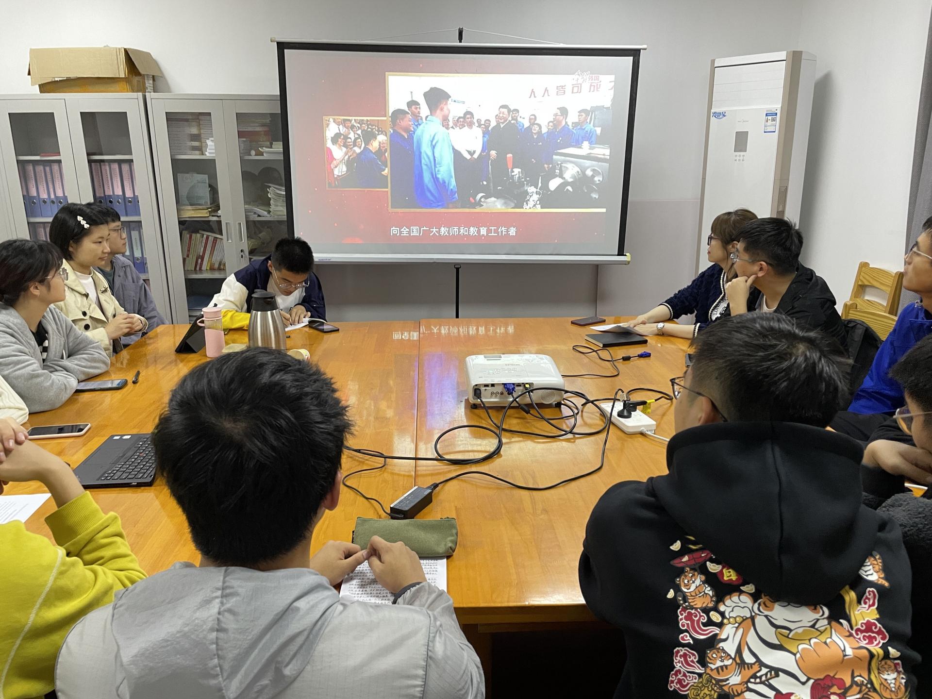 学习会开始,全体党员共同观看了《习近平的教师情》专题片,重温习近平总书记和人民教师在一起的温情瞬间。支部委员陈子萌同志领学了习近平总书记的回信内容,随后,全体党员展开交流研讨,纷纷表示要珍惜时光、刻苦努力、砥砺品格,进一步营造尊师重教的良好氛围,把个人理想追求融入党和国家事业之中,毕业后到祖国最需要的地方建功立业,用为人民服务的实际行动提交无悔青春的满意答卷。会末,支部书记黄乐老师总结发言,希望全体党员确立“青年当有志,立志在四方,祖国需要处,皆是我故乡”的精神,以奋斗作青春最靓丽的底色,展示求知探索、努力创新、披荆斩棘的势头,以青春之姿喜迎党的二十大胜利召开。