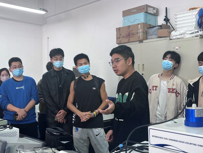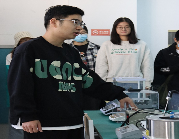 实验室研究生曾博文同学详细地为学生党员们介绍了实验室目前正在研究“碳达峰、碳中和”方向的课题,如新型热电材料与热释电材料等。