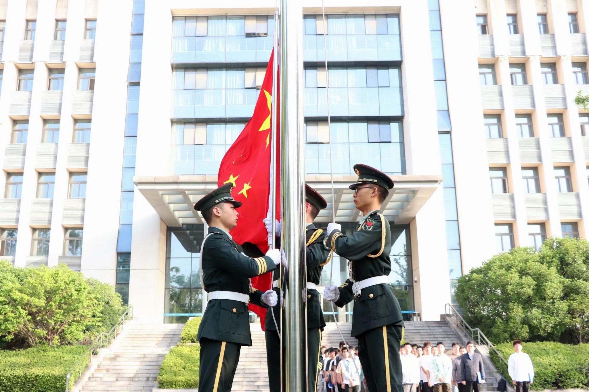 近日,tyc1286太阳成集团在明正楼前广场举行“国旗下的青春告白”主题升旗仪式。tyc1286太阳成集团党委副书记路遥,辅导员李晓、焦学凯以及本科生代表参加此次活动。活动由土木类2205班时泽林主持。