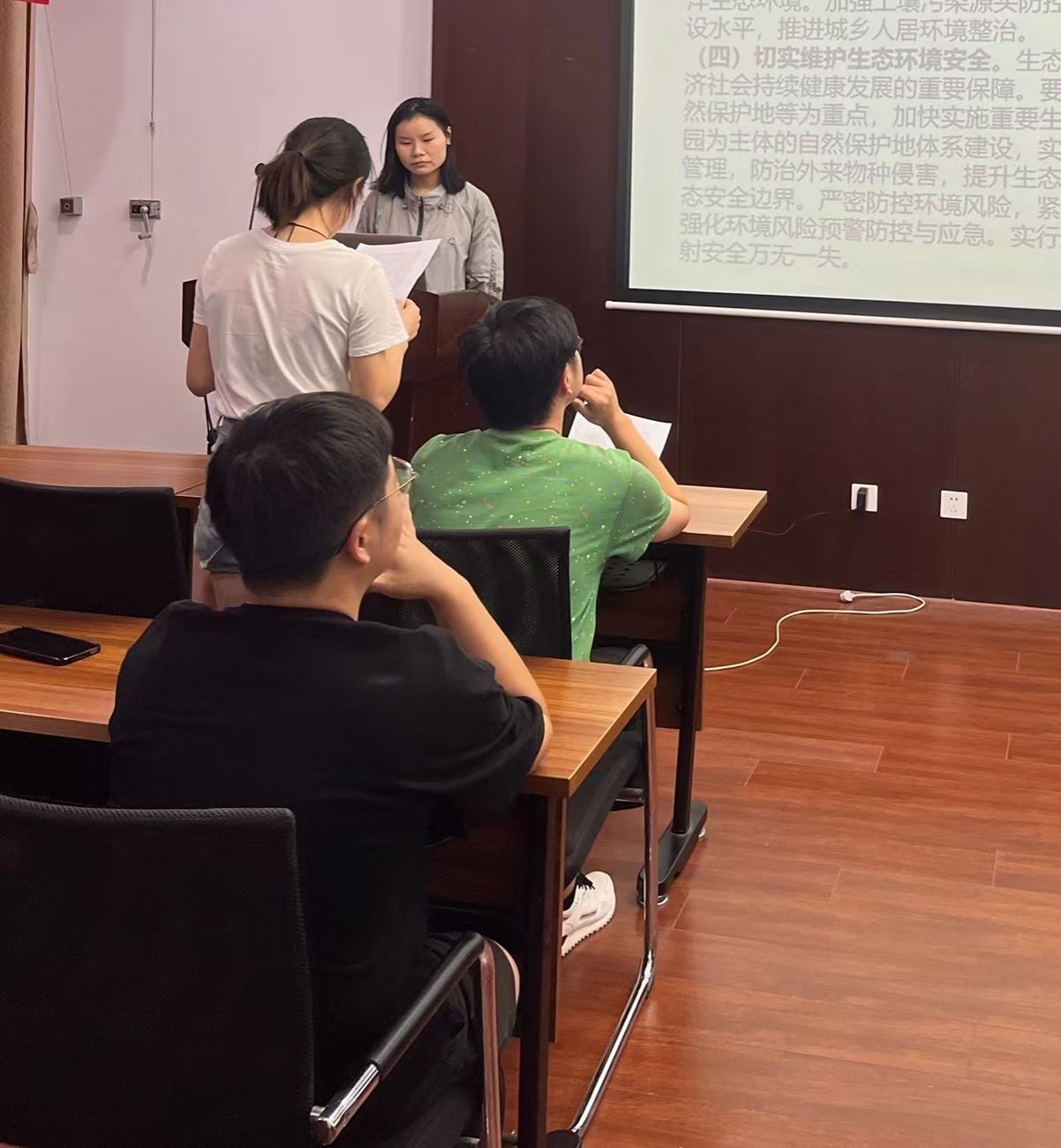 支部首先开展理论学习。王雪萍、章伯阳、郑明星三位同志分别进行学习汇报,从提升思想境界、加强党性锻炼等方面,结合自己的学习情况,进行了思想学习报告与分享。随后,党支部书记谢璐璐代表党支部委员会向全体党员报告半年来党支部工作情况及检视问题情况。该报告从党员政治理论学习、党员发展和支部建设三点展开,总结了党支部半年来学习习近平新时代中国特色社会主义思想、吸纳支部成员以及组织支部活动等情况,报告还检视了党支部在开拓创新、支部考核和联系群众等工作中存在的问题。最后,与会党员开展批评和自我批评,针对自己在思想以及工作学习方面存在的问题进行深刻的剖析与反思,并提出改进方案。面对其他党员提出的批评与建议时,也坦诚接受批评,认真反思,展现出自我改进与完善的决心。