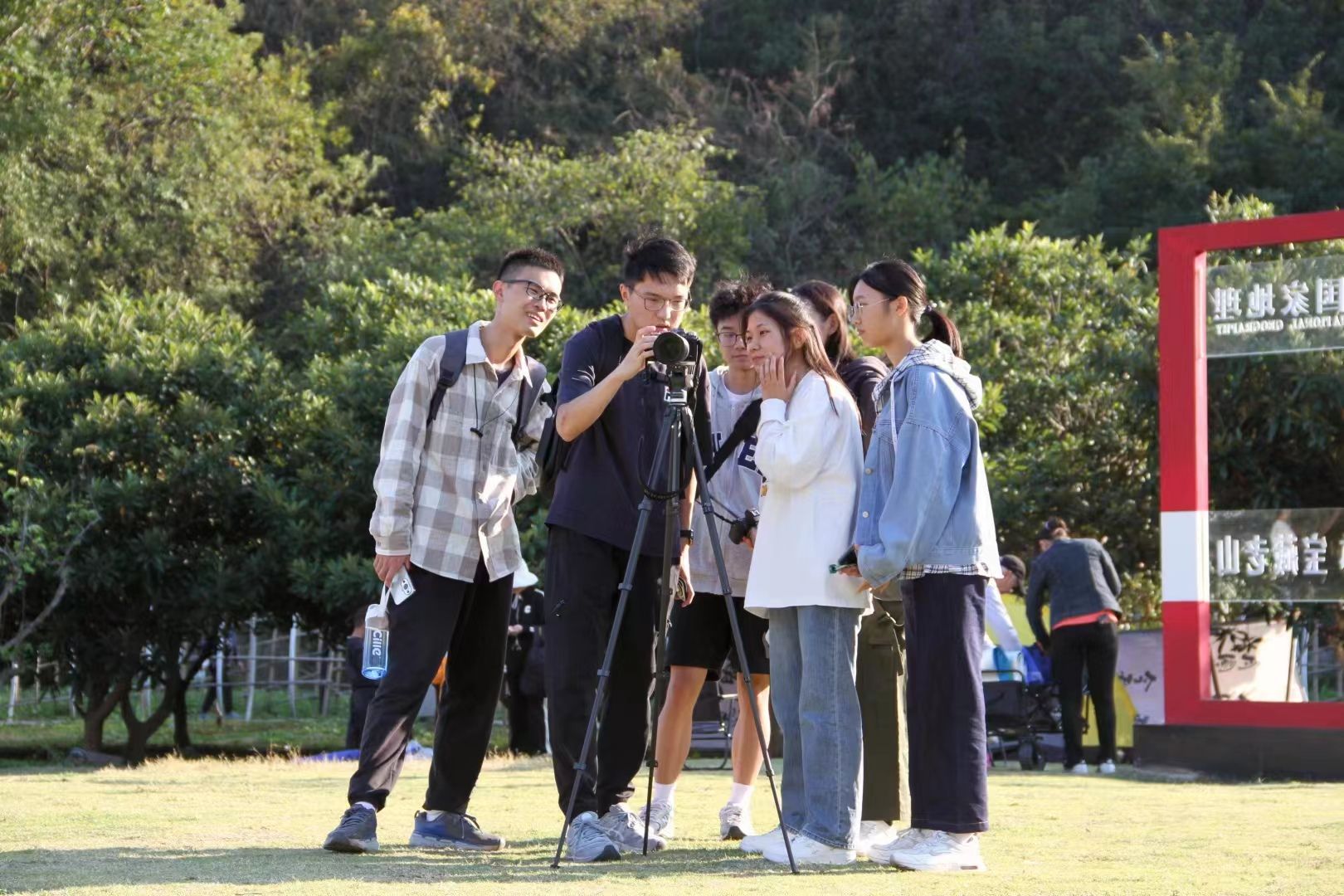 理论学习后,嘉木之音网络工作室光影部部长高中赫、廖望、彭斯晨带领同学们前往象山湖和不老泉景区,在实践中开展有关摄影技术的教学,带领新生了解相机各类参数的调整、视角选择等多种摄影技巧。