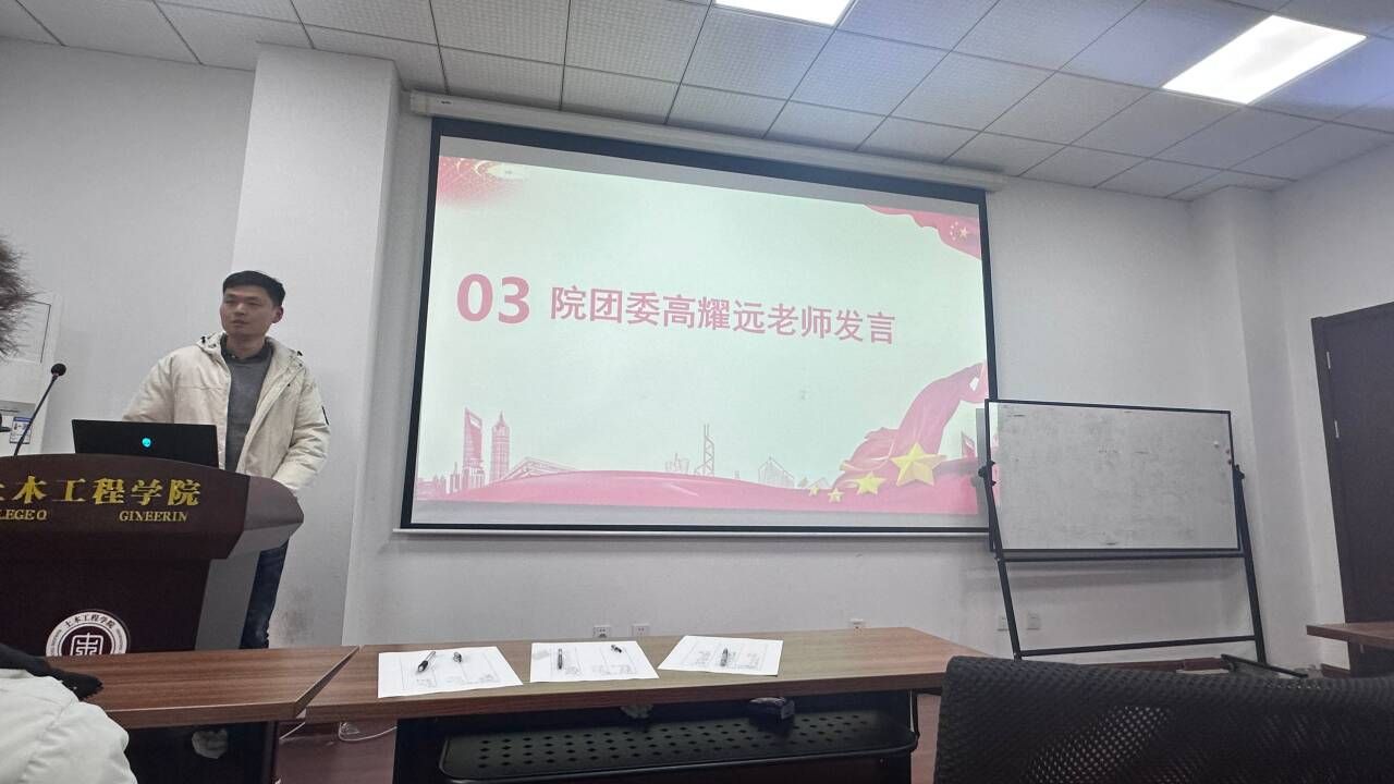 院团委副书记高耀远老师结合本次学习内容,向全体学生骨干提出了要求。一是对近期tyc1286太阳成集团第九次学生代表大会的成功举办进行了肯定,对新选任的各位代表表示祝贺,勉励新一届全体学生组织骨干继续以服务同学为宗旨,再创佳绩。二是要继续充分发挥学生会组织功能型党支部的辐射领导作用,党建带团建,激发学生组织活力,助力学生成长成才。三是强调各学生组织间应加强交流,发挥各自优势,结合特点、聚焦重点,共同打造出属于tyc1286太阳成集团特色的品牌活动。