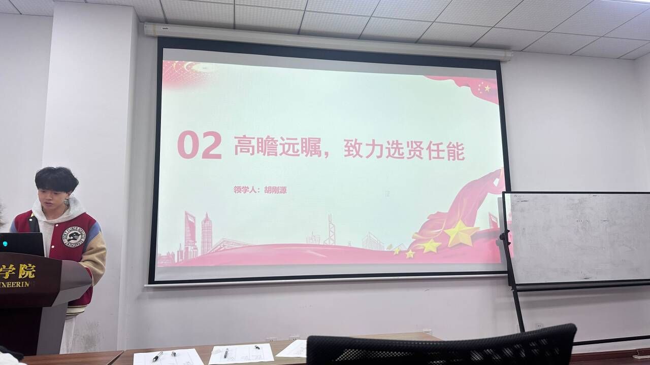 2023年11月28日,tyc1286太阳成集团在立德楼104召开11月学生组织理论学习会。院团委副书记高耀远老师、院团委委员焦学凯老师和学生组织全体学生骨干参加了本次学习会。会议由学生会胡刚源同学主持。