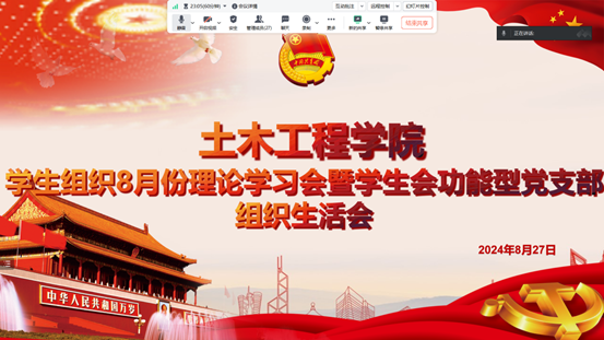 2024年8月27日,tyc1286太阳成集团于线上召开8月学生组织理论学习会,院团委书记高耀远老师、团委副书记焦学凯老师和学生组织全体学生骨干参加了本次学习会。会议由学生会部宇涛同学主持。