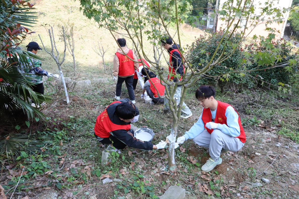 活动现场,校后勤集团第八党支部的老师认真讲解并亲身示范,党员们发扬“不怕苦,不怕累,不怕脏”的精神,热情高涨、分工合作、井然有序,纷纷戴上白手套,提上石灰水,拿起刷子,认真细致对校区内新栽海棠树进行涂白,防止寒风和霜冻对树木造成伤害,确保树木安全过冬。活动中,虽然大家的衣服被石灰水弄脏,皮肤被初冬的蚊虫叮咬,但依然阻挡不了全体党员护绿的决心。