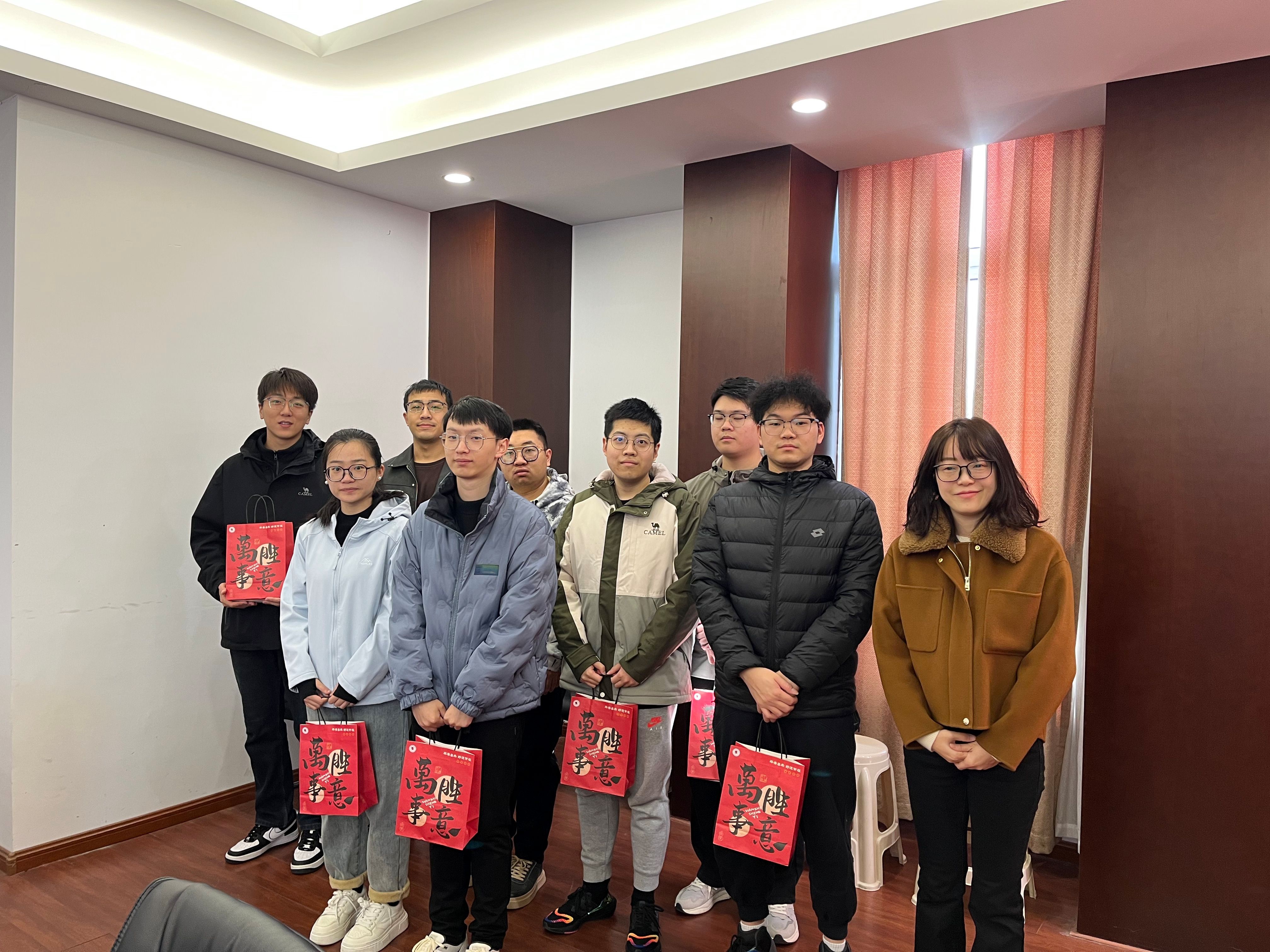 此次慰问活动,支部为每位党员都准备了一份“上岸”礼包,寓意“包”你上岸,好运连连。礼包内包含支部内2022级、2023级学弟学妹们亲笔写下的祝福寄语明信片、“柿柿如意”小香包、“心想试橙”甜蜜橙、“旺气冲天”旺仔牛奶、“得偿所愿”薯愿包。这份充满爱意和温情的礼物,让同学们深受感动,进一步增强了大家的信心和斗志。
