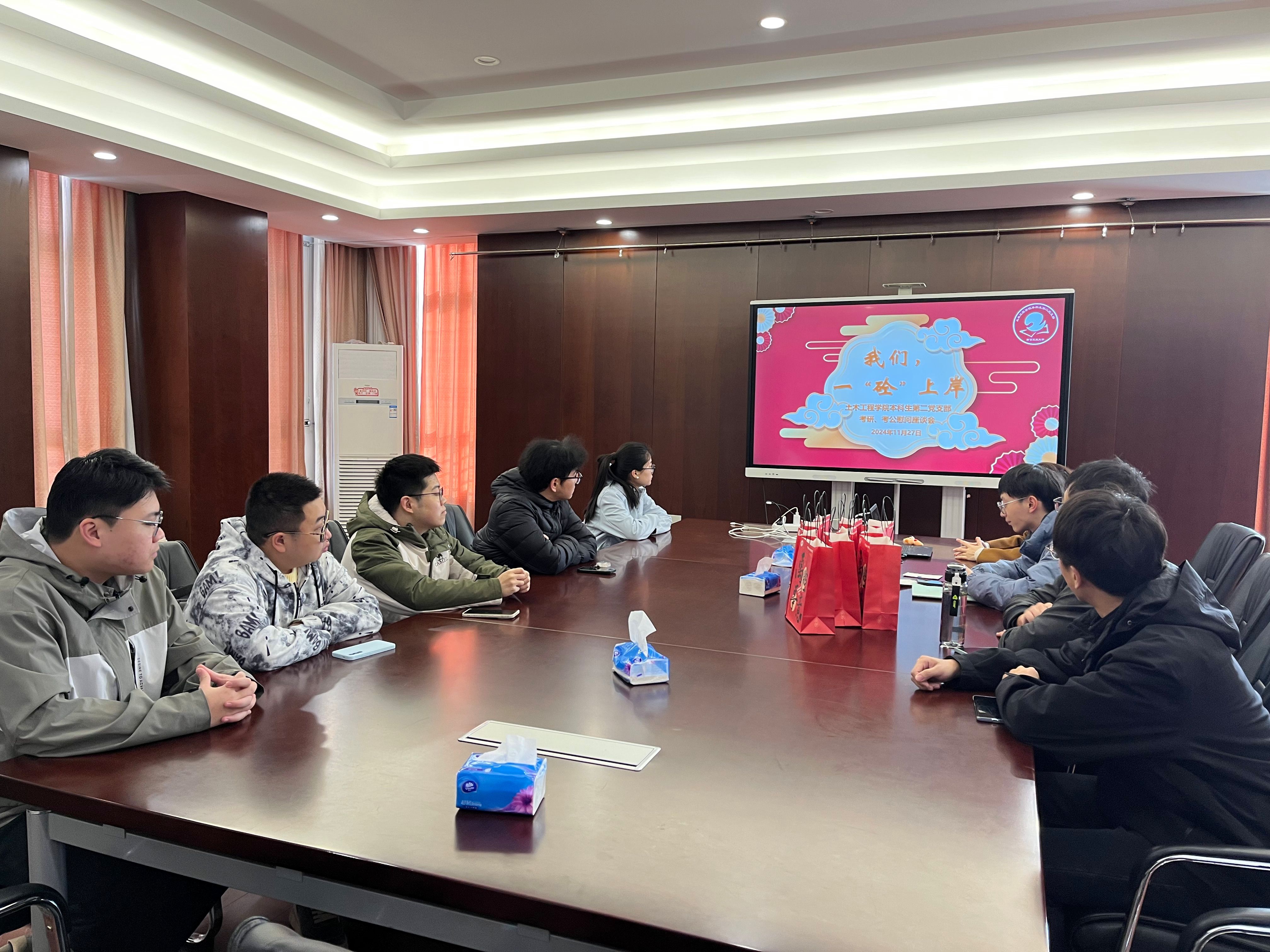 此次考研、考公慰问座谈会是学院“研途·相伴”系列活动之一,也是本二支部“促学行动”品牌活动的延伸。时光不负有心人,岁月不负逐梦者。祝福2025届考研、考公学子们一举夺魁、金榜题名,2025年,我们一“砼”上岸!