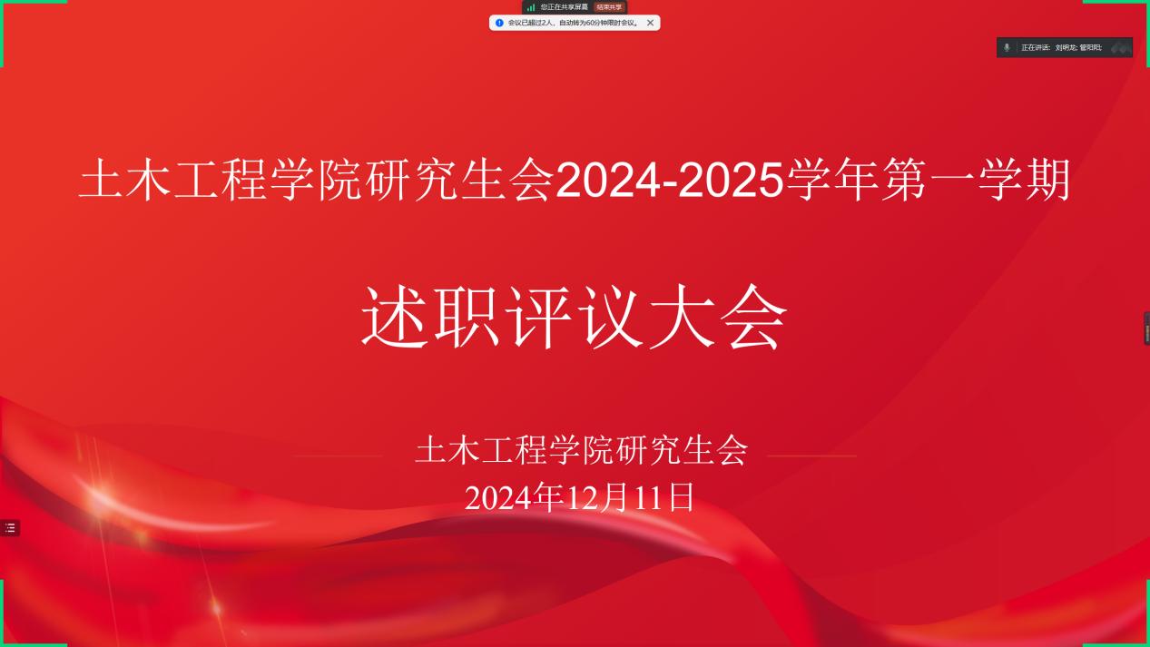 12月 11 日晚,tyc1286太阳成集团研究生会2024-2025学年第一学期述职评议会在线上开展。院研究生会主席团成员和各部门部长参加本次会议。