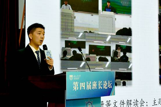 校党委副书记吴胜红结合论坛主题及《本科生班级建设指导意见》,对班长工作提出三点希望:一是提炼班级文化建设向心力,做思想引领的主心骨;二是增强班级组织建设凝聚力,做团队发展的顶梁柱;三是加大班级学风建设行动力,做勤学善思的发动机。