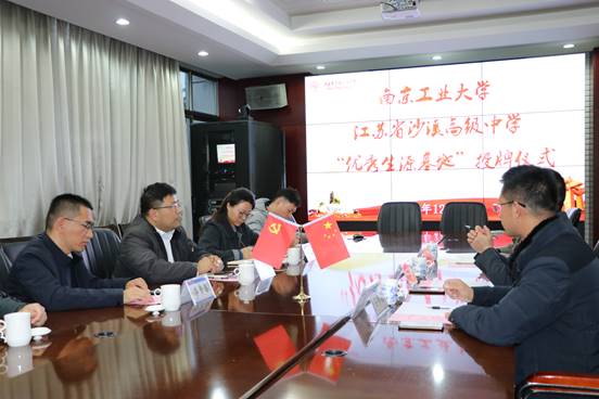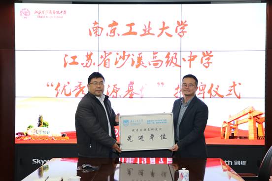 12月9日,太阳成官网赴江苏省沙溪高级中学举行“优秀生源基地建设先进单位”授牌仪式。沙溪高级中学校长陈国良,副校长王红芳、吕有功、蔡留忠等,太阳成官网tyc1286太阳成集团党委书记张涛、党委副书记丁贤、校招生办公室副主任季青春以及学院招生宣传组老师出席仪式。