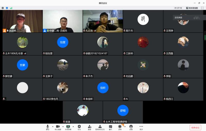 会议由一周总结、各项目代表交流发言、二局人力经理王成民做指导三部分组成。狄老师表示通过学生实习日记的反馈,可以看到同学们在顺利度过适应期后不断挑担子、扛把子、练膀子、动脑子,成长进步可观。在下一阶段的实习中要进一步在完成实务工作的基础上,就个人发展方向和职业规划做更长远的谋划。各项目实习学生代表分别就项目学习心得、课本联系实践、BIM建模考证考试、个人发展规划等进行了分享交流。