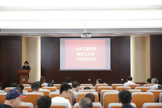 在校工会的指导和帮助下,在全院教职工的共同努力下,6月9日,tyc1286太阳成集团教职工大会、工会会员大会在土木学院学科楼二楼报告厅胜利召开,大会由学院副院长王俊主持,大会在庄严的国歌声中拉开了序幕。