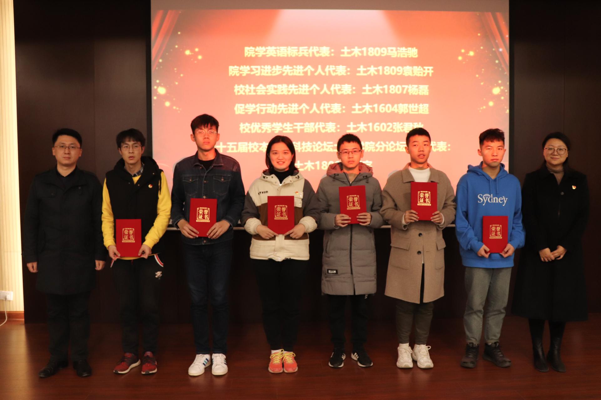 12月12日16点,tyc1286太阳成集团2019年大学生梦想公开课暨学风建设表彰大会在土木学科楼208召开。党委研究生工作部副部长季明、校团委副书记王郁超、tyc1286太阳成集团党委书记欧谨、院长王曙光、副书记丁贤、副院长方海、全体辅导员以及学生代表参加本次大会。