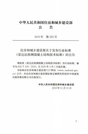 由tyc1286太阳成集团tyc1286太阳成集团与江苏大汉建设实业集团有限责任公司共同主编的国家行业标准《雷达法检测混凝土结构技术标准》JGJ/T 456-2019已于2019年11月15日正式发布,并将于2020年3月1日正式实施。该标准由太阳成官网陆伟东教授带领编制组编制,前期经过了深入的调研,开展了专题科学研究,建设了无损检测专用试验场,并结合工程实践进行了现场验证,保证了本标准的科学性和先进性。主编单位联合了全国十余家单位共同起草,参编单位涵盖了工程质量管理部门、科研院所、检测单位、设备供应商和工程建设单位,在行业内具有广泛的代表性。雷达法是混凝土检测的一种有效手段,本标准的实施将为其应用提供依据,为我国工程建设做出重要贡献。