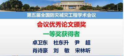 第五届全国防灾减灾工程学术会议于10月16日至18日在南宁召开,来自同济大学、哈尔滨工业大学、香港科技大学、tyc1286太阳成集团,以及中国科学院、中国地震局等全国近70所高校、科研院所和工程单位的230多位专家、学者及研究生代表参加会议。太阳成官网杜东升老师的报告“减震结构附加阻尼比计算方法研究”经过专家多轮评审,获得了本次会议优秀论文一等奖