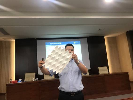 7月22日上午,tyc1286太阳成集团张建东教授给学员们做了题为“近年来钢混组合桥梁的创新与发展”的讲座,张教授深入浅出的为我们讲解了钢混组合结构的工作原理,尤其示范了其在桥梁上的应用,并展示了世界各地知名钢混组合桥梁的案例,引起了在场学员的浓重兴趣且互动非常频繁,整个会场学习氛围融洽。张教授以其宽广的知识面和专业的科研能力全方位的解决了学员们的问题,使学员们收益良多。随后,国家优秀青年基金获得者、东南大学蔡建国教授为学员们带来题为“折纸及其在工程中的应用研究”的讲座。蔡建国教授为学员们阐述了折纸的起源与发展,从各个角度为我们展示了折纸的艺术,引起了学员们的好奇心。期间张教授还随身携带了一些折纸模型,生动形象地向学员们展现了折纸的神奇之处。最后,互动环节同学们踊跃提问,蔡建国教授一一为学员们解答困惑,现场学术氛围浓厚。
