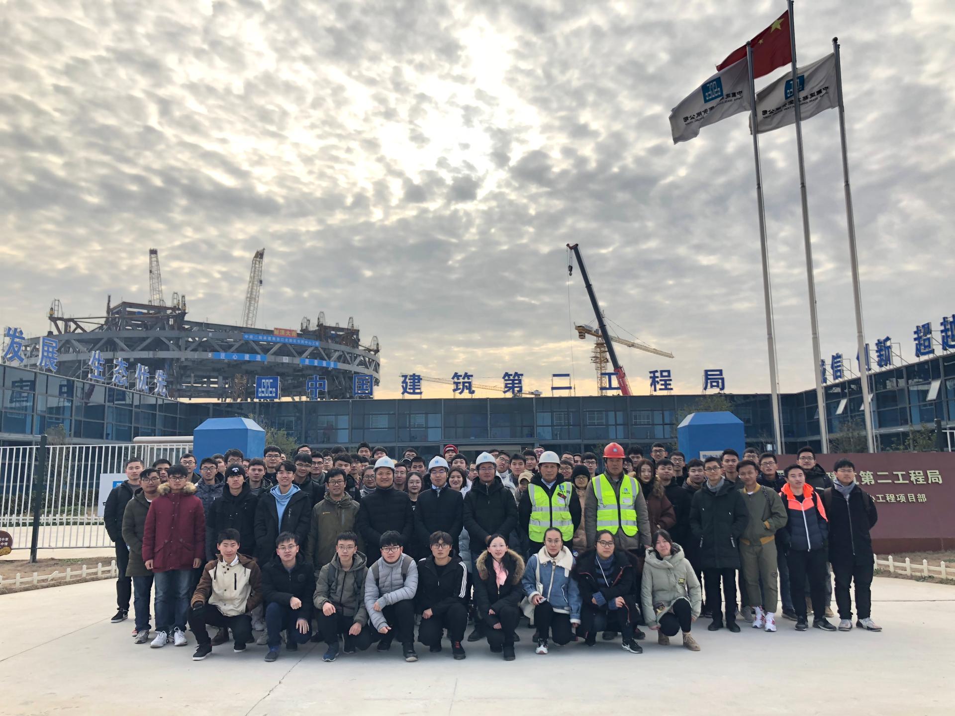 为进一步深入贯彻新工科实践教学的要求,积极发挥施工单位与施工现场对实践教学的推动作用,加强学生对专业知识的理解与掌握,12月29日下午,tyc1286太阳成集团组织学生参观江北新区市民服务中心工程展。本次活动共有四个年级百余名同学参与,由齐玉军老师带队参观。