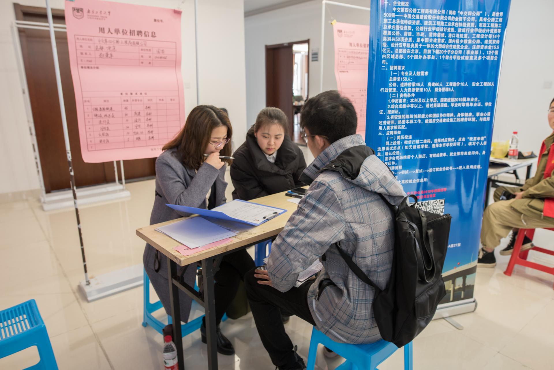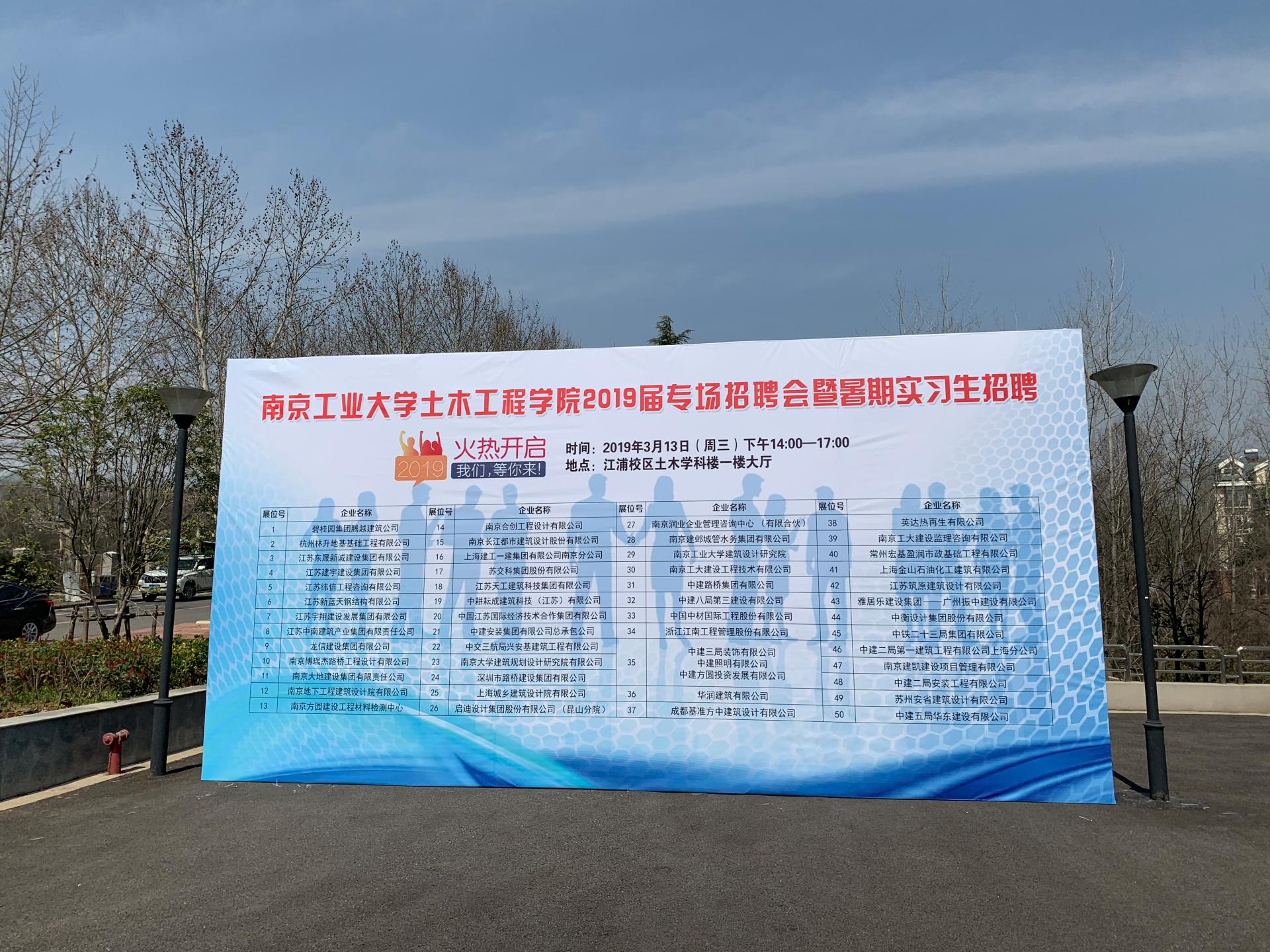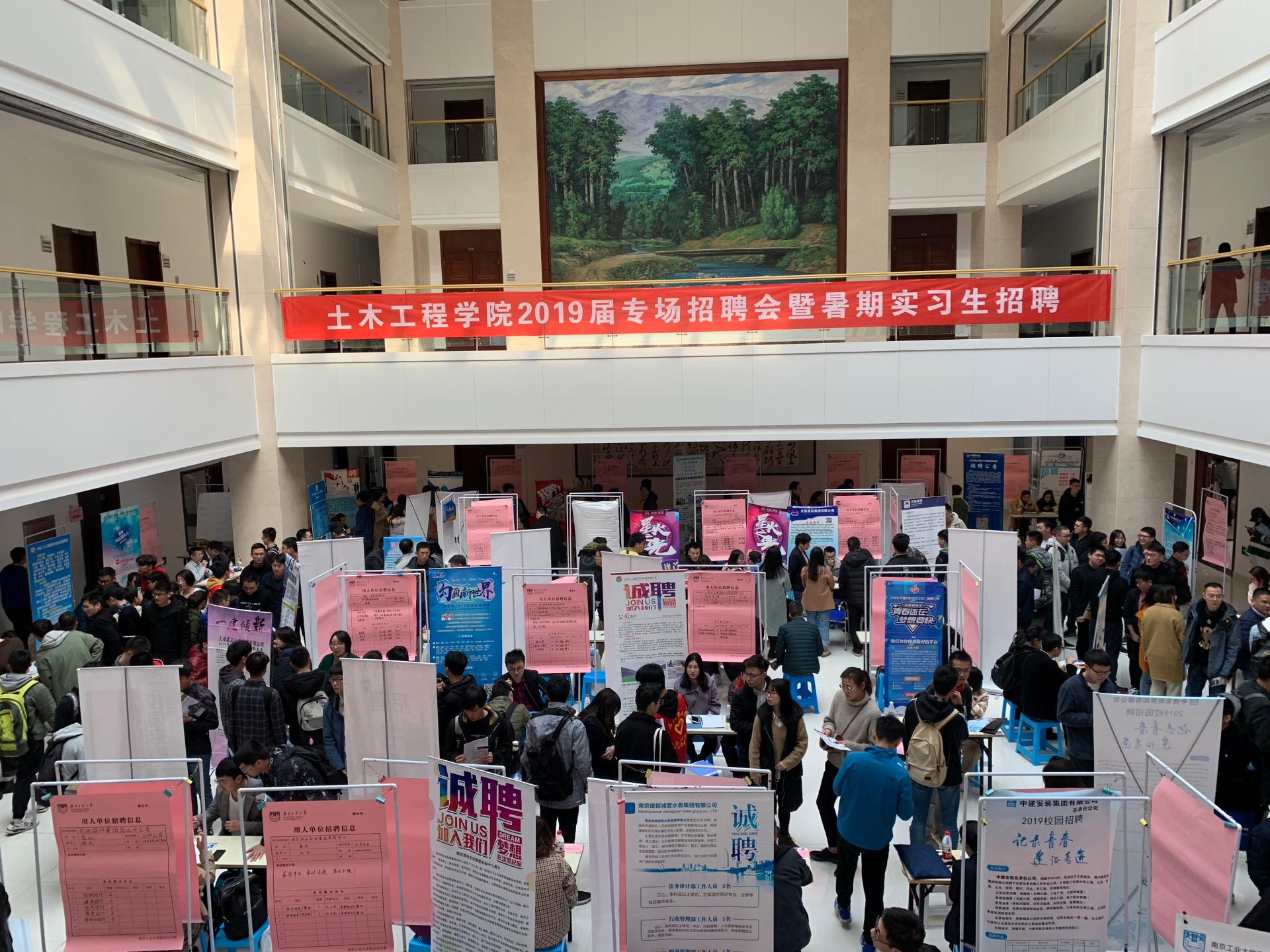 3月13日下午,tyc1286太阳成集团2019届专场招聘会暨暑期实习生招聘会在土木学科楼一楼大厅举办。碧桂园集团腾越建筑公司、南京合创工程设计有限公司、南京长江都市建筑设计股份有限公司、苏交科集团股份有限公司、华润建筑有限公司等53家企业合力推出1000余个就业岗位。