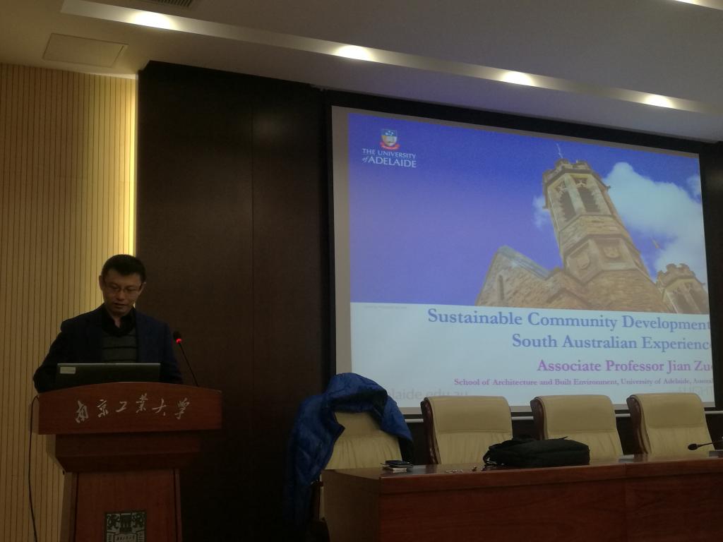 座谈会结束后,左剑教授在土木学科楼2楼报告厅作了主题为“Sustainable community development: Australian experience;Studying at School of Architecture and Built Environment, The University of Adelaide”的报告,会议由土木学院王俊副院长主持。讲座过程中,左剑老师首先通过一组澳大利亚的人文环境图片,让大家更加直观地了解澳洲的风土人情,随后以一个可持续发展社区的案例,深刻地阐释了社区可持续发展的内涵,最后介绍了澳洲工程管理界研究和应用的热点问题,整个学术讲座气氛融洽、互动频繁,在场师生纷纷表示收获很大,最后讲座在热烈的掌声中结束。
