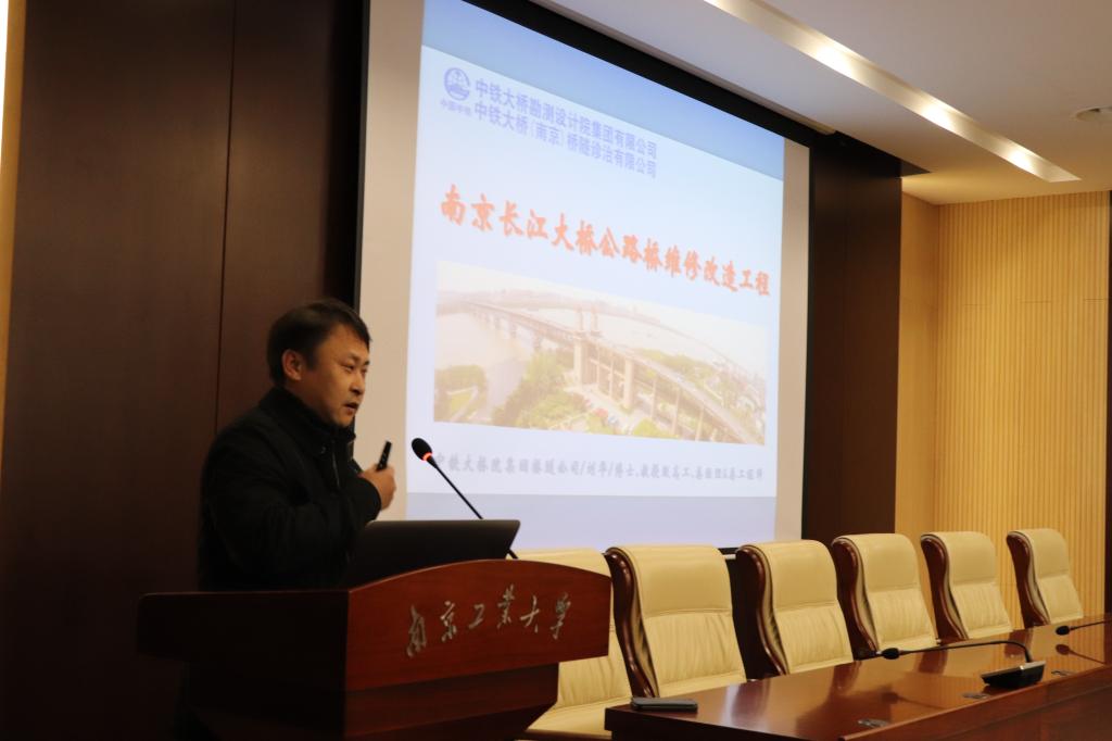 刘华博士向师生们介绍了南京长江大桥的背景,讲解了为何改造其公路桥的原因,通过珍贵的现场照片等资料,系统详细而又深入浅出地阐述了27个月工期内的改造技术要点,同时还介绍了中铁大桥院设计的多座双层公铁桥,让师生们对南京长江大桥公路桥改造的背景以及桥梁结构维修加固改造的基本流程和方法有了深刻的认识。