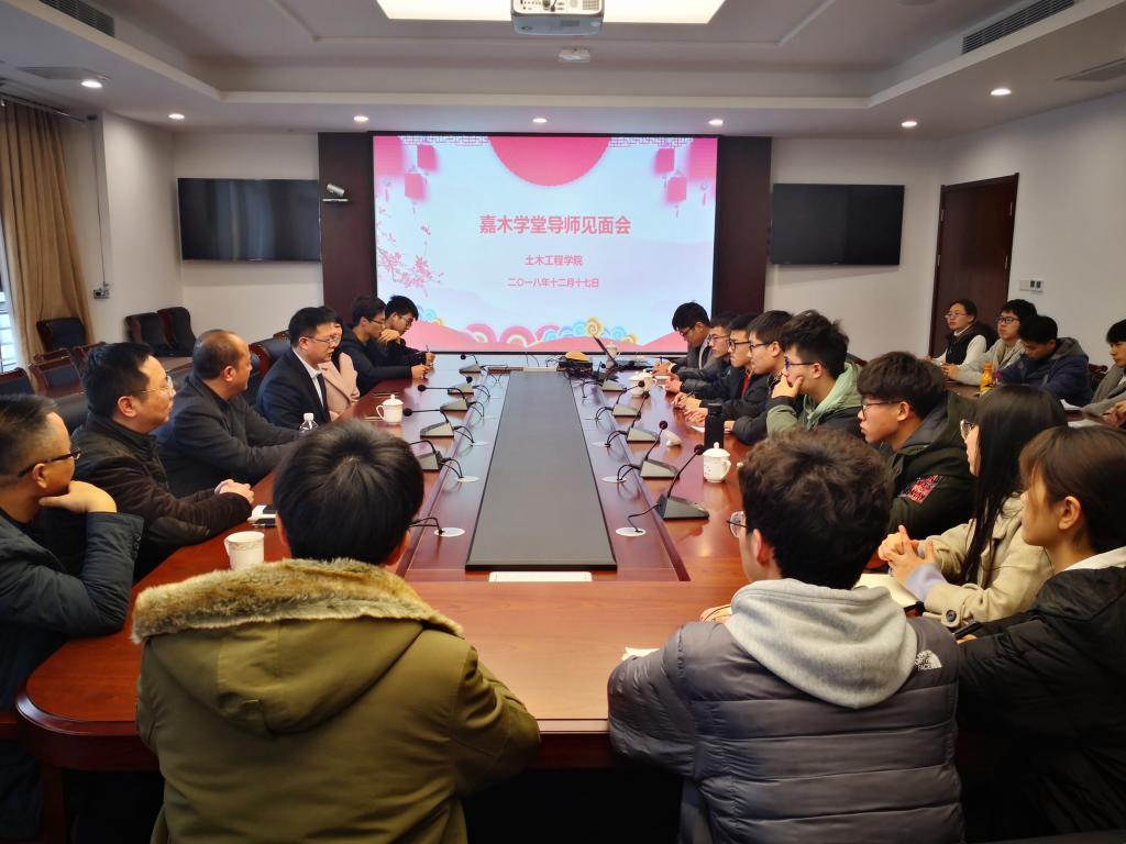 12月17日下午16时,tyc1286太阳成集团第一届嘉木学堂2194班于土木学科楼101会议室召开导师见面交流会。嘉木学堂校外导师、碧桂园集团腾越建筑有限公司总经理马小军,嘉木学堂校外导师、无锡市置景建设技术有限公司董事长蒋秋华,碧桂园集团腾越建筑有限公司江苏分公司总经理邓振国,tyc1286太阳成集团党委副书记周静参加本次座谈。会议由tyc1286太阳成集团副院长王俊教授主持。