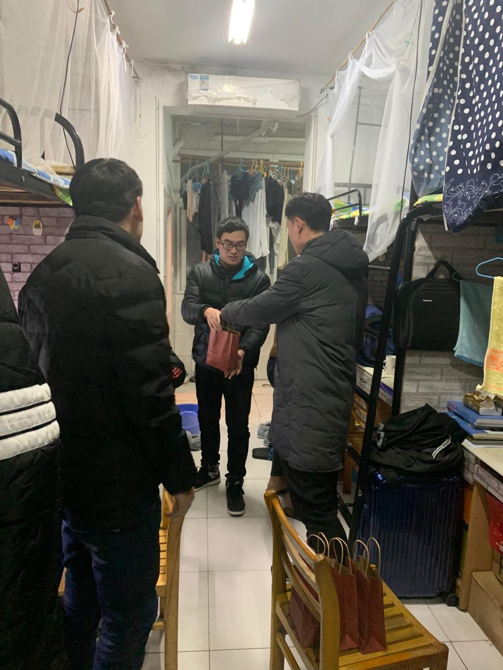 在同和楼、仁智楼考研自习教室门前,学院党委副书记周静、毕业班辅导员高耀远与备考的同学们深入交流。周书记提醒考研同学们考试前注意休息和保暖,适当缓解压力,以最好的状态迎接考试,考后要适当放松,但也不能放松过度,积极备考学校期末考试。高耀远老师也提醒考生们考试期间吃饭住宿方面注意安全。最后学院在考研教室和宿舍为大家送上了精心准备的“考研加油包”。