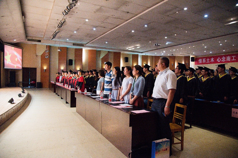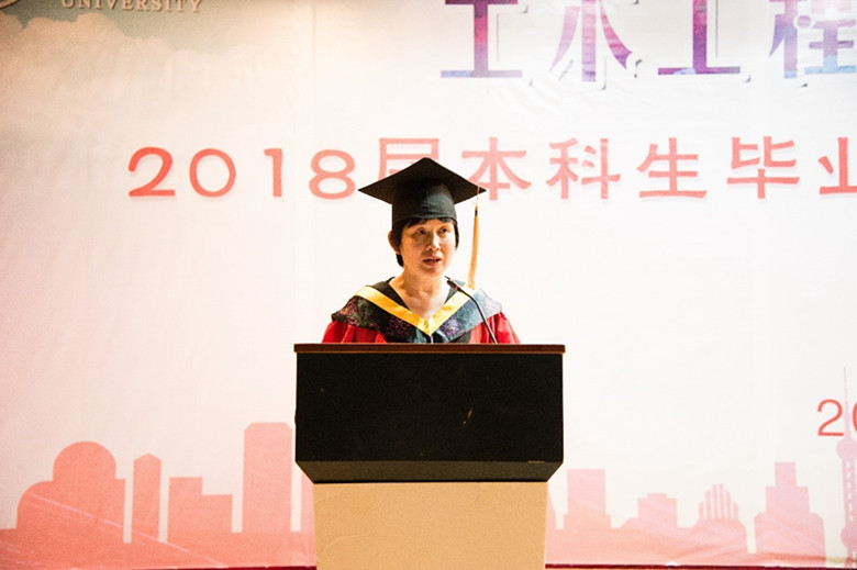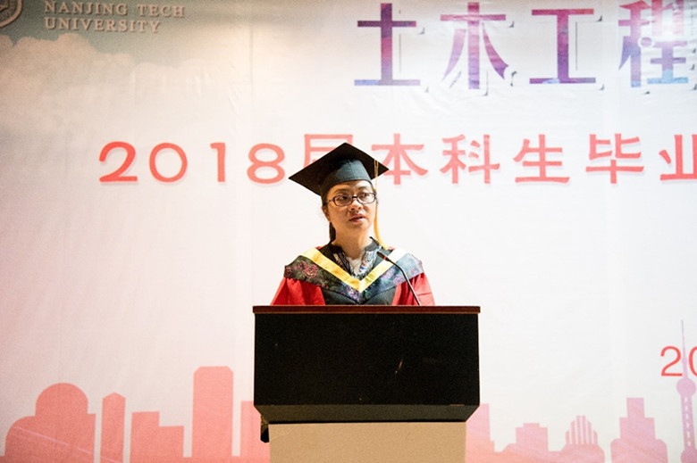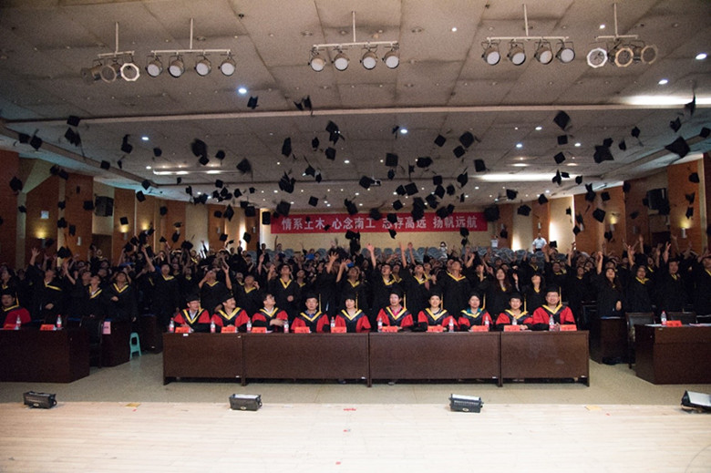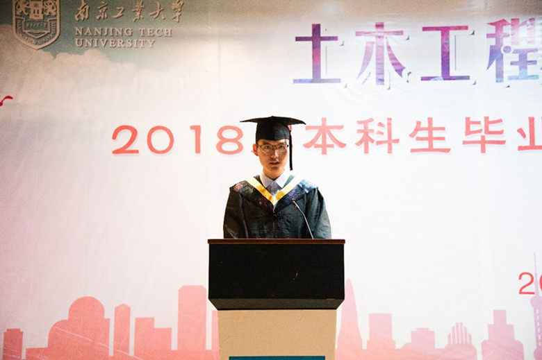 随着国歌声响起,毕业典礼正式拉开序幕。学院党委书记欧谨在致辞中向2018届全体毕业生表示祝贺并对提出了三点期望:要胸怀大志,持之以恒,始终坚持理想信念;要加强自身修养,坚持培养和造就优秀品格;要热爱生活,珍惜生命,保持仁爱、善良之心,发现生命的乐趣。学生代表土木1408班赵凯同学在发言中表达了对学校、对老师的感激之情。教师代表李雪红教授送给毕业生八字箴言“阳光、真诚、责任、健康”。校友代表张正平先生从“勤俭、专业、沟通和担当”四个角度与毕业生们分享了自身工作经历和感受。伴随着记录四年大学生活的纪念片,教授们为毕业生预授学位。最后,全场毕业生向空中抛出学士帽,宣告着自己的顺利毕业,在欢呼声中本次毕业典礼完美谢幕。
