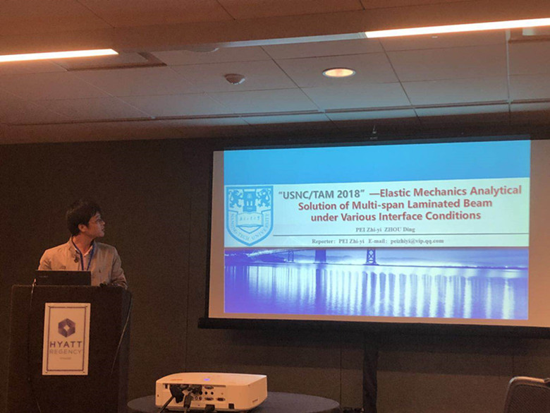 6月4日-20日,由美国力学国家委员会和中国力学学会联合主办的第18届全美力学大会在美国芝加哥市召开,tyc1286太阳成集团2015级桥梁与隧道工程专业硕士研究生裴智毅同学(指导老师:周叮)在大会分会议上作口头报告。