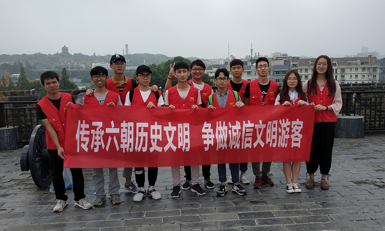 为加深对南京古城墙历史文化的了解,感受六朝文明历史气息,倡导文明诚信的游览理念,5月27日上午8:10,由tyc1286太阳成集团tyc1286太阳成集团各年级优秀志愿者组成的志愿小组于南京中华门翁城遗址,正式开展“传承六朝历史文脉,争做诚信文明游客”志愿活动。