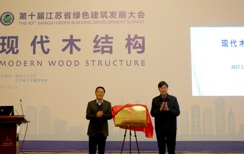 在热烈的掌声中,江苏省住房和城乡建设厅副厅长刘大威和刘伟庆副校长为现代木结构产业联盟揭牌。