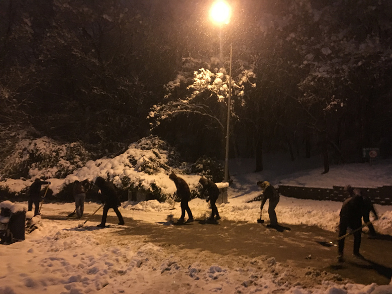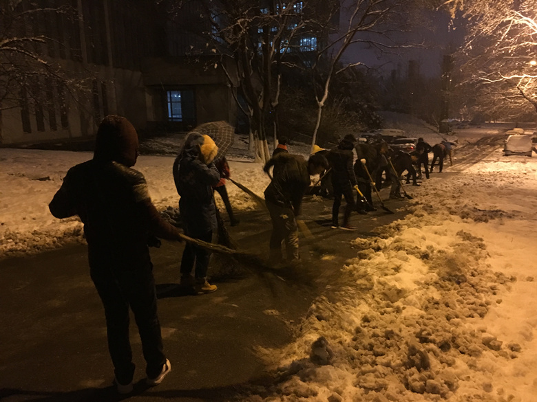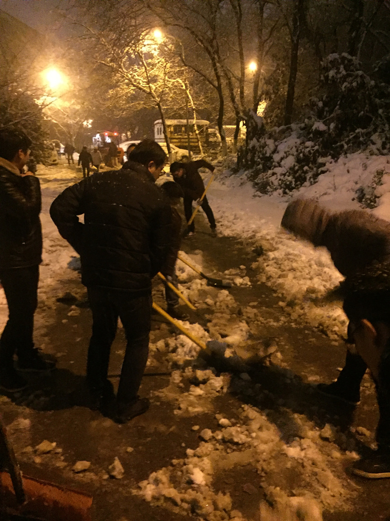 尽管大雪纷飞,气温很低,路面湿滑,但师生们没有畏缩,没有抱怨,齐心协力共同铲雪,校园内路面状况、通行能力得到明显改善。在接下来四天,tyc1286太阳成集团各个系将轮班打扫,确保大家的校园出行安全。
