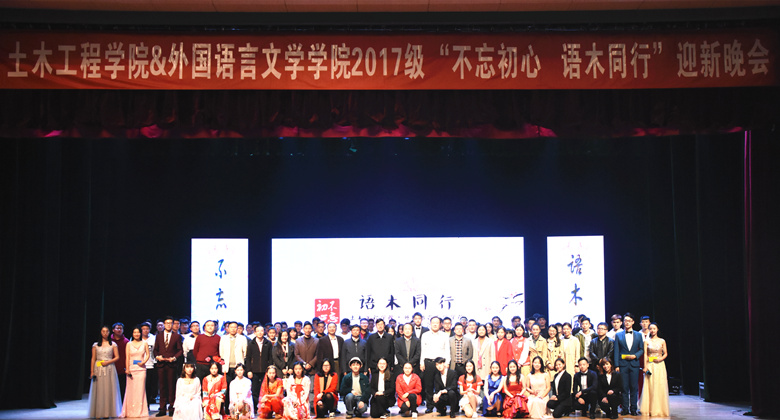 11月13日晚,tyc1286太阳成集团与外国语言文学学院“不忘初心,语木同行”2017级迎新晚会在江浦大礼堂举行。副校长刘伟庆,副校长崔益虎,校相关职能部门代表、两院党政领导、各系室主任、教职工代表、新生家长代表与2017级本科生、研究生共同观赏了这场精彩纷呈的演出。