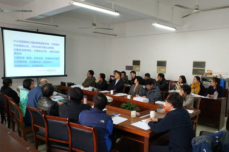 首先,王俊副院长宣读了土木工程专业评估(认证)工作人员名单,解释了工程教育评估(认证)的作用、特点和对教学的具体要求,并介绍了当前土木类其他相关高校的评估(认证)通过情况。