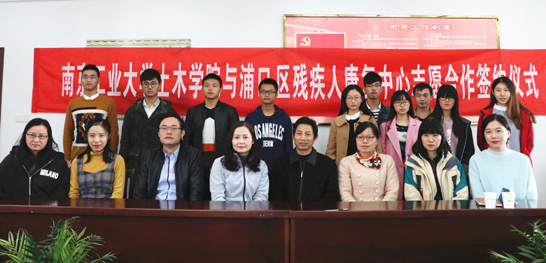 为贯彻落实十八大会议精神“深化群众性精神文明创建活动,广泛开展志愿服务”要求,11月3日下午,土木学院赴浦口区残疾人康复中心举行关于共建青年志愿者服务基地的签约仪式。土木学院党委副书记熊中宏、学办主任闵珍、团委书记张琳、团委副书记张文闻、黄晨晨老师和浦口区残疾人康复中心主任张谊、副主任乔琼出席了仪式。