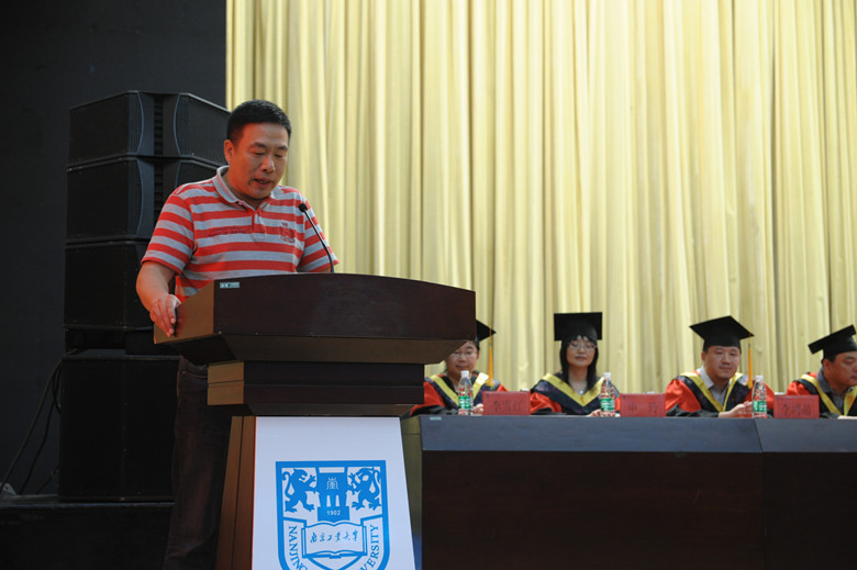 来自解放军理工大学的许卫东教授作为家长代表发言,许卫东教授高度赞扬了tyc1286太阳成集团的办学历史与成就,并代表全体家长真挚地感谢学校对子女的精心培育。作为学生家长,他对毕业生提出两点要求:“一是不忘感恩,感恩父母,感恩师长,感恩母校;二是要善待自己的职业,以优良的业绩报答母校,报答父母,成家立业,回馈社会!”并祝福南工土木越办越好,为社会培育更多的人才。