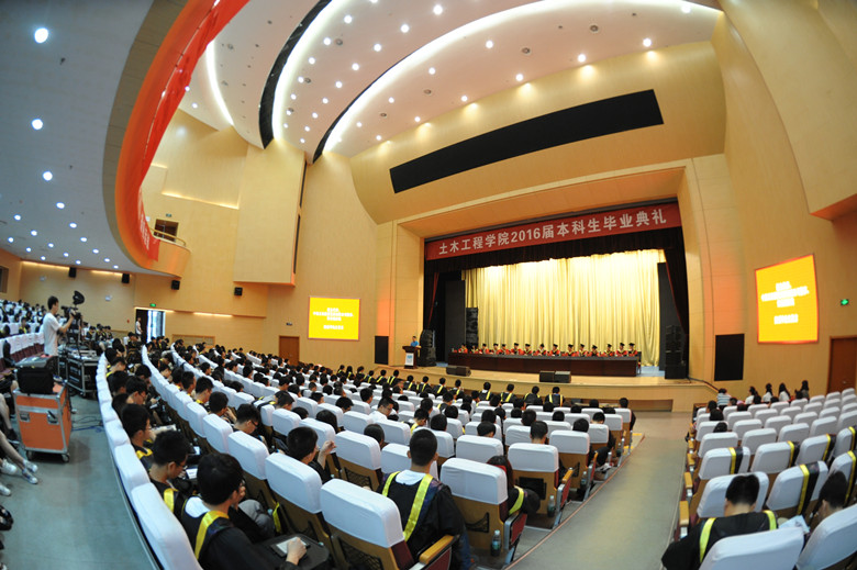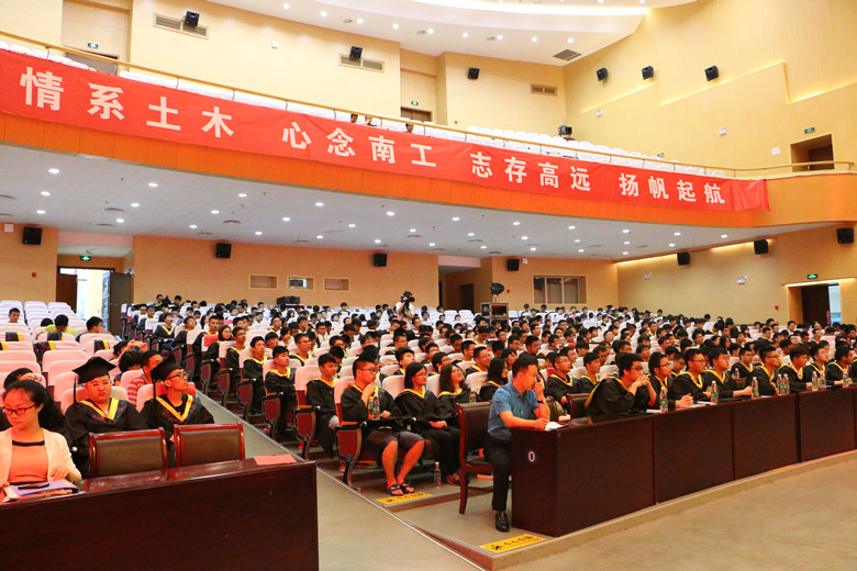 典礼伊始,院长肖岩教授向2016届全体毕业生送上最热烈的祝贺,祝贺同学们顺利完成学业,走向人生新征程,祝愿全体毕业生同学:“于千古风流人物,英雄豪杰汇聚之金陵,求先进思想,未来科技智慧。傍古都典雅风范,陶冶现代都市情商。怀二战悲情,立报国大志。从大江之滨,扬郑公未尽拓疆征帆。”希望同学们奋勇前行,南工土木学院始终是学子的坚实后盾。