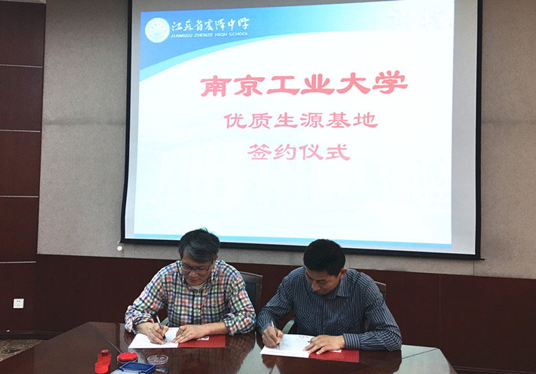 熊中宏副书记与江苏省震泽中学校党委书记陈容签署“优秀生源基地”协议书