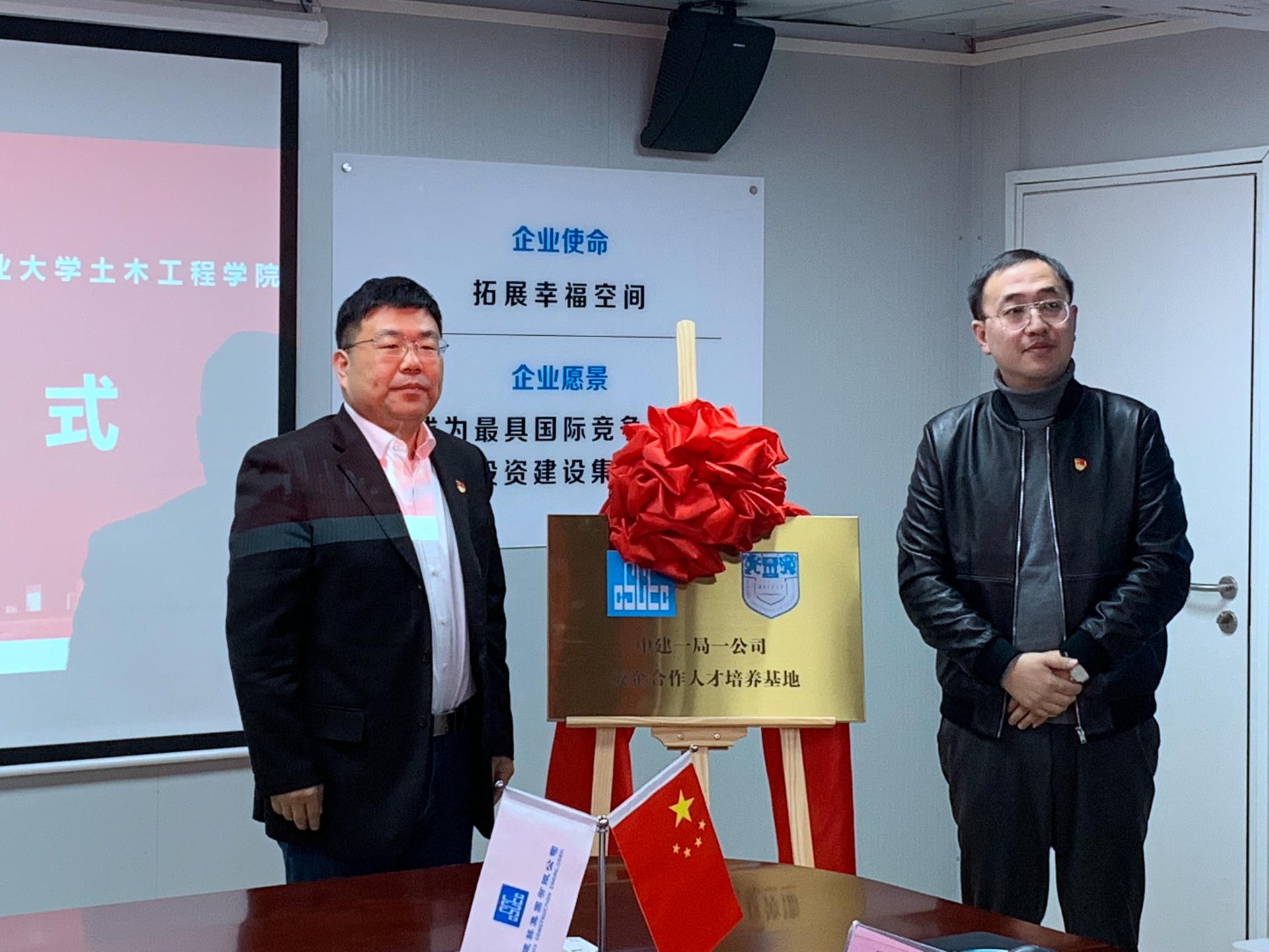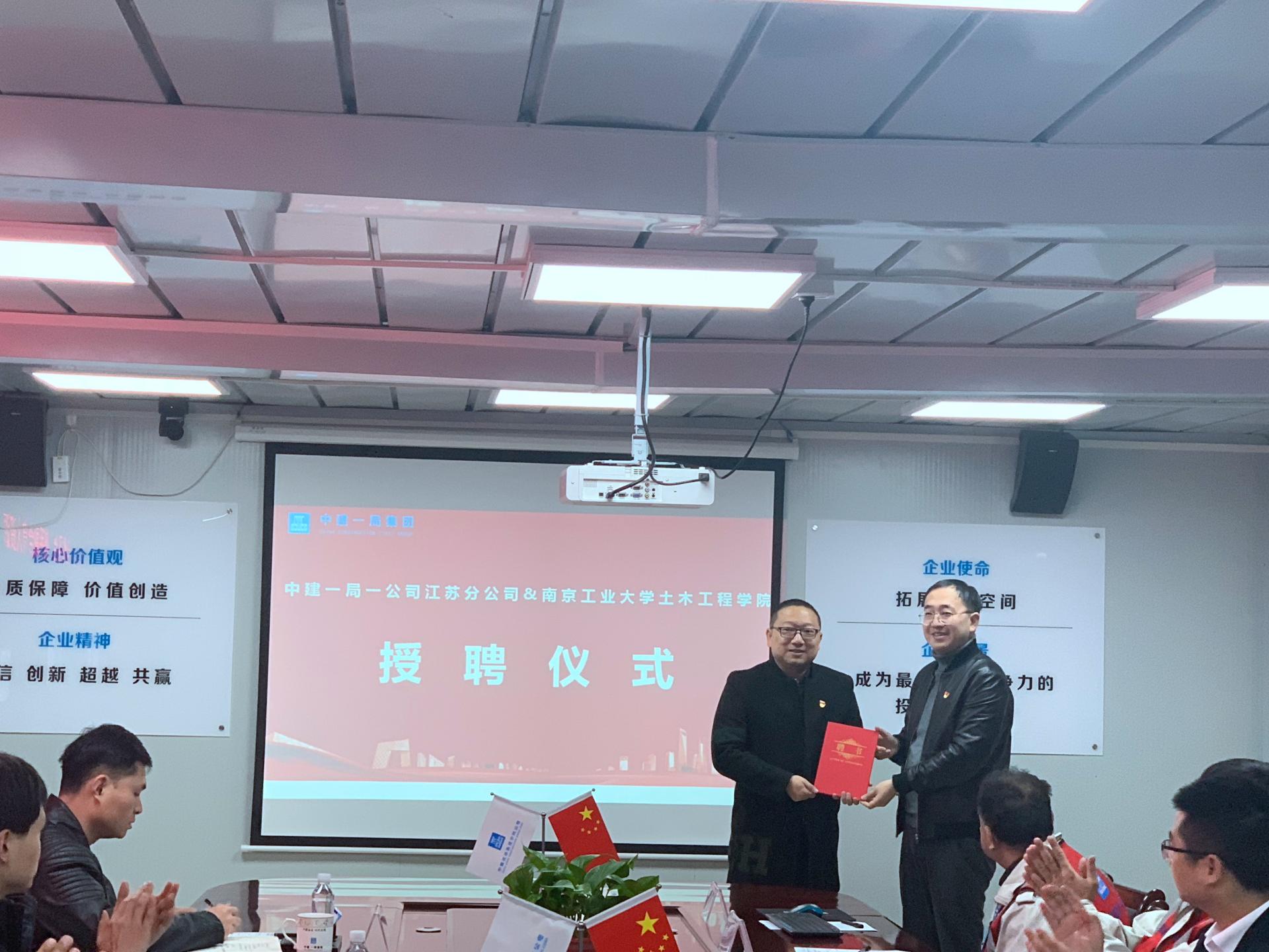 3月19日上午,tyc1286太阳成集团党委书记张涛带队送青年教师、院长助理、教师第二党支部书记、防灾减灾系系主任岳健广副教授赴中建一局江苏分公司省妇幼保健院地下停车库项目建设一线挂职锻炼。中建一局江苏分公司副总经理王旭、项目经理曹毅、tyc1286太阳成集团党委副书记路遥、组织员杜静静、学办主任黄乐、团委书记高耀远等参加了受聘揭牌仪式。