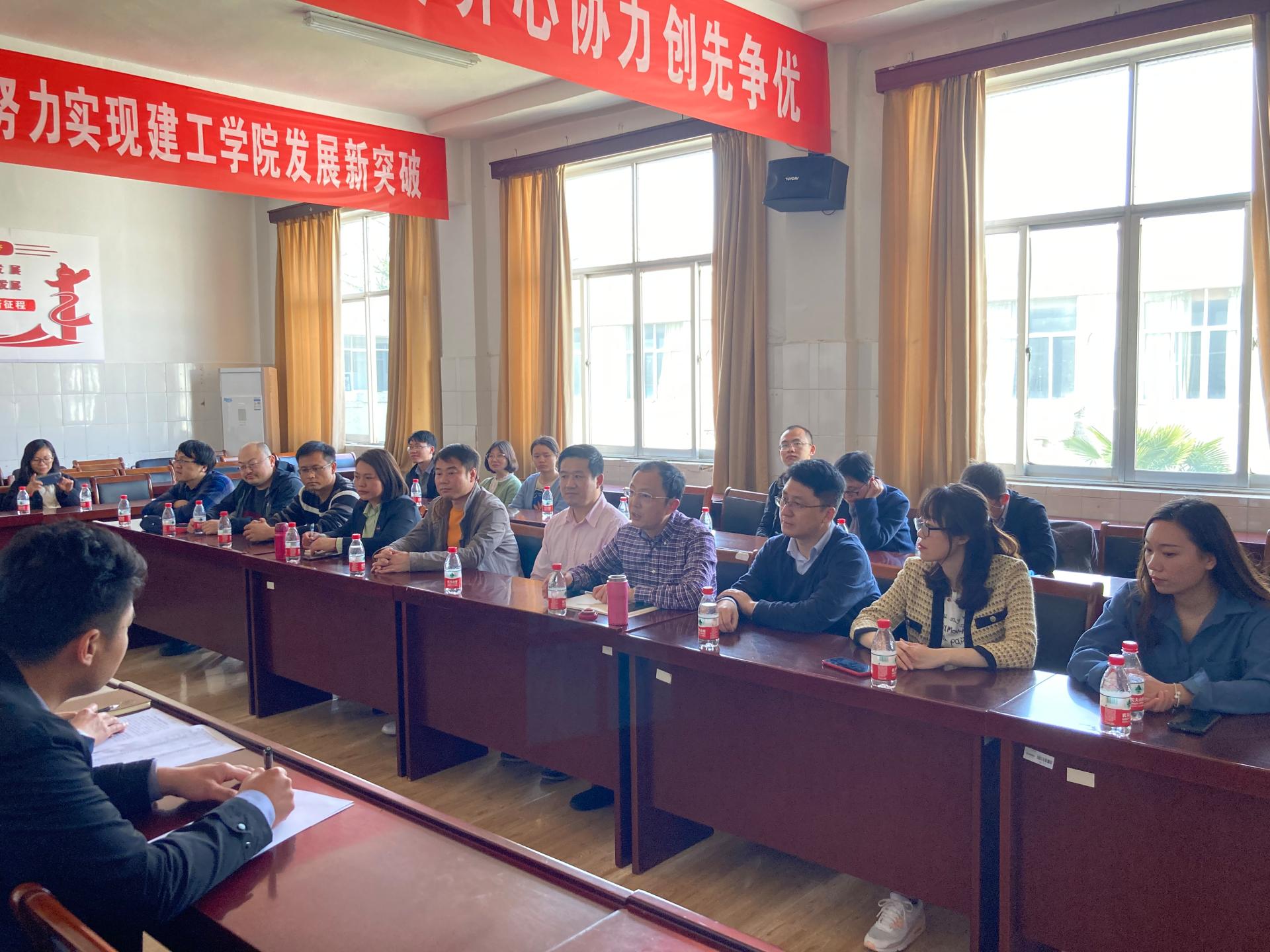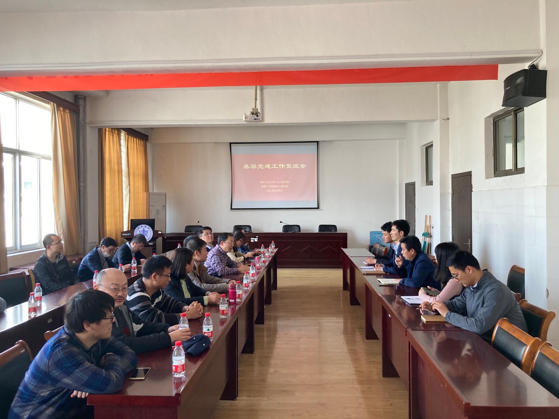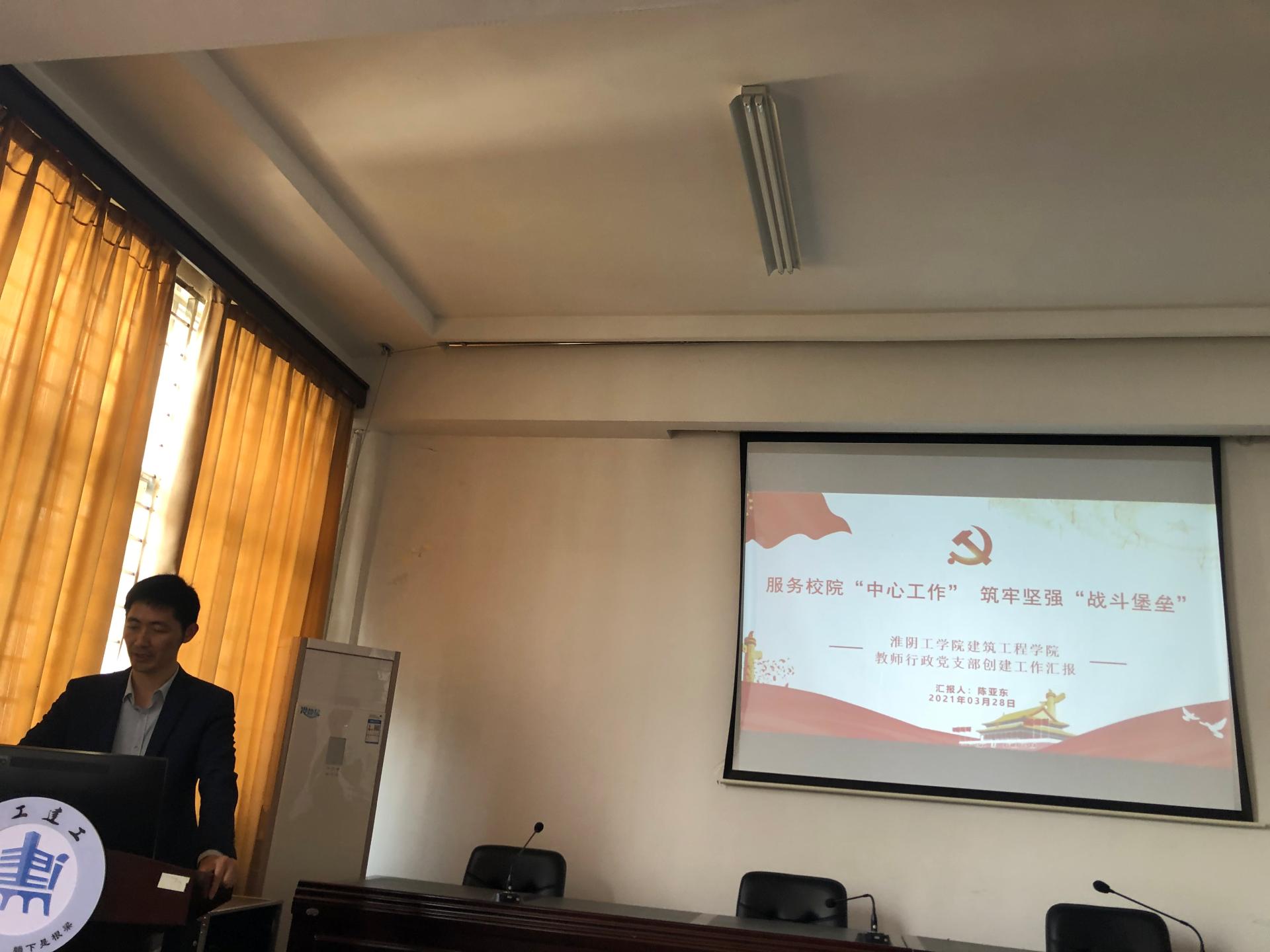 淮阴工学院建筑工程学院院长董云、党委书记陈亚东、副院长周潮以及学办主任、实验室主任等出席了会议,陈亚东书记重点介绍了首批全国党建工作样板支部—“淮阴工学院建筑工程学院教师行政党支部”的特色创建工作,详细讲解了支部特色做法、工作中的有效举措和取得的成效。与会人员还就基层党建、“十四五”规划、教师队伍建设、网络思政及毕业生就业创业等工作进行了深入探讨和交流。