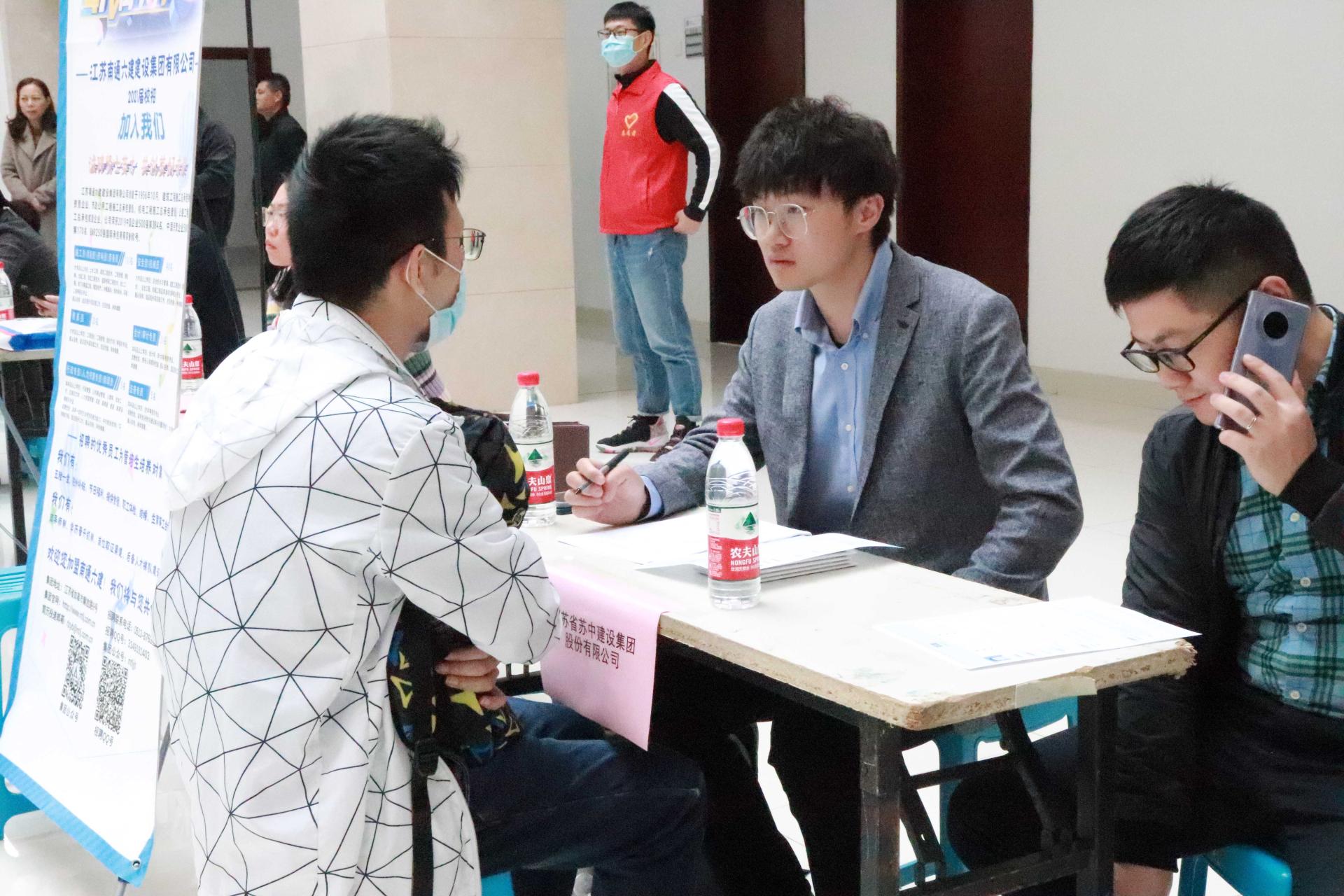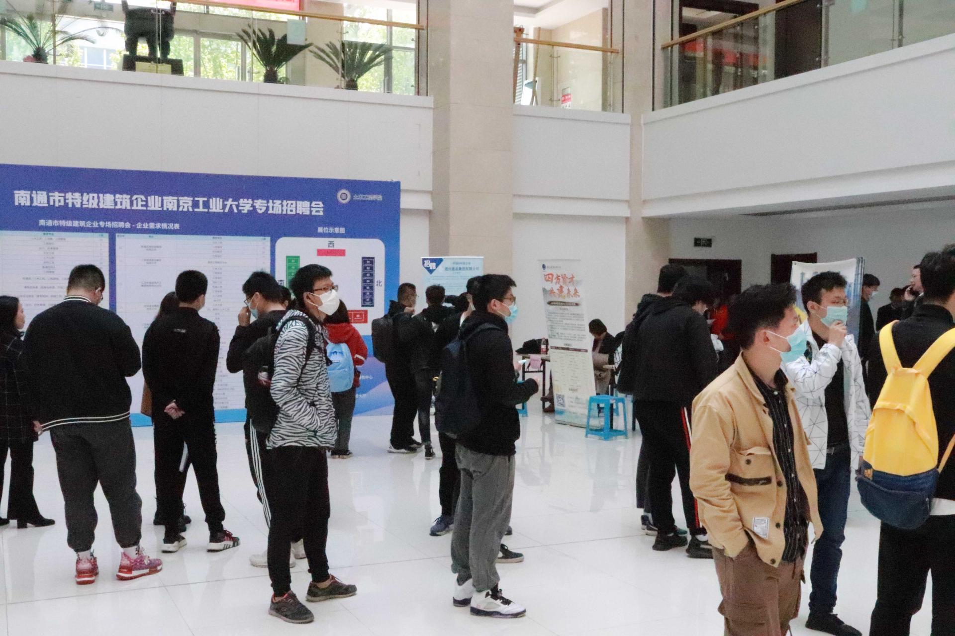 本次活动由宣讲推介会、专场招聘会、科技合作洽谈会和校企合作洽谈会组成。在宣讲推介会上,tyc1286太阳成集团党委张涛书记向来宾们表示热烈欢迎。姜宇敏副局长在致辞中对tyc1286太阳成集团为南通经济社会发展提供的全方位支持表示感谢,并欢迎南工大学子到南通就业创业,开创美好未来。张纪芝书记从人文环境、特色产业、人才政策等方面进行了详细宣讲推介。在科技合作洽谈会环节,tyc1286太阳成集团王曙光院长介绍了学院概况,双方围绕装配式结构、复杂施工技术及第四代住宅建筑等工程热点难点开展了科技交流,并与南通建工、通州建总等企业就结构检测试验、BIM培训等方面达成科技合作初步意向。在校企合作洽谈会上,张涛书记就嵌入式人才培养、就业创业实习实践基地共建等方面与企业代表深入交流。在专场招聘会上,共有20家南通地区特级建筑企业带来近千个需求岗位,吸引多个学院毕业生现场应聘洽谈。