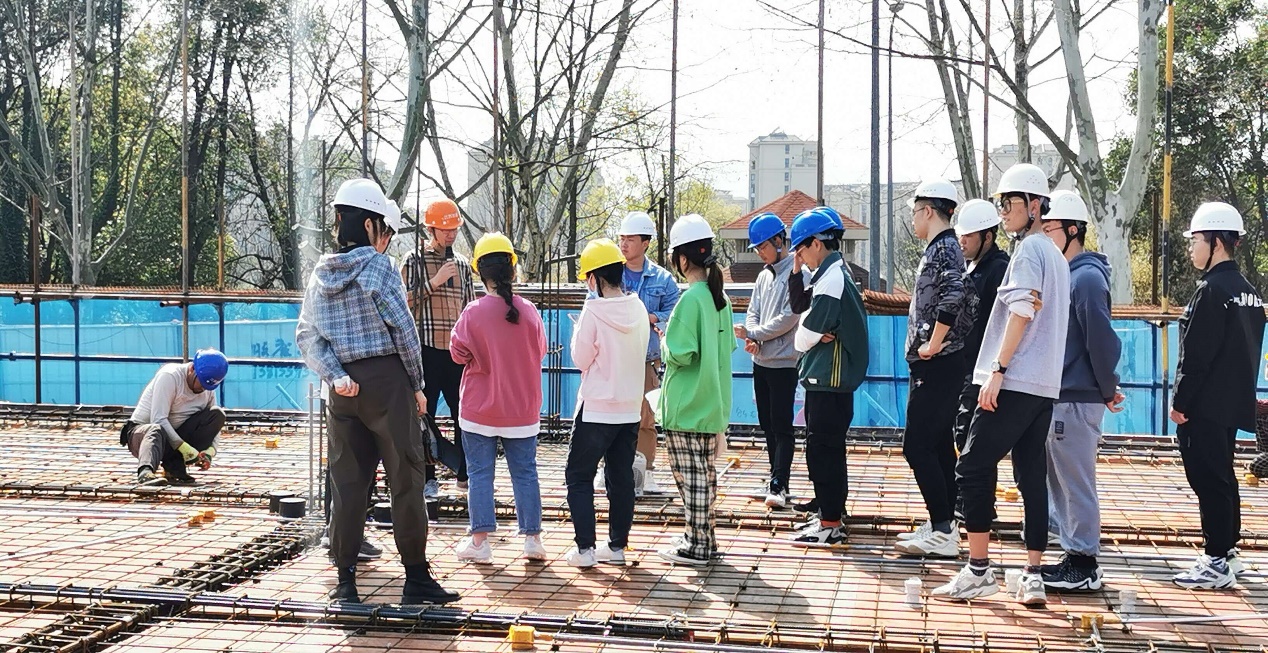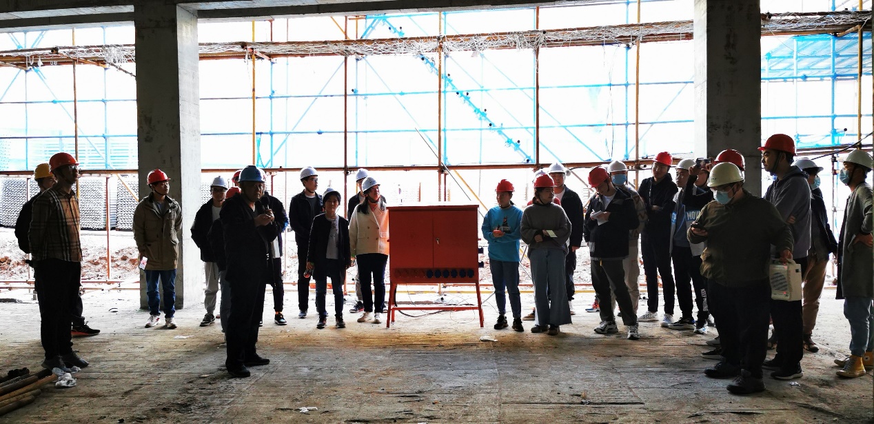3月24日至25日,在卢红琴、宋俊美、霍瑞丽、蔡云竹等老师的带领下,同学们走进了学校校园内部工地项目—tyc1286太阳成集团江浦校区化学与分子工程学院办公楼和实验楼,该项目由江苏省建筑设计研究院有限公司设计、华夏工程项目管理有限公司监理、江苏贡固建设工程有限公司施工,总建筑面积15979.70平方米,采用钢筋混凝土框架结构体系,地下1层,地上6层,总建筑高度23.85米。现场参观时,本项目正在进行第4层梁、板、柱钢筋的绑扎工作,通过专业技术人员的讲解,同学们对钢筋混凝土框架结构建筑的结构平面布置、配筋构造、施工工序有了比较深刻的认识,并学习了山地建筑基础工程的施工要点、楼梯梯柱与梯梁布置、伸缩缝和抗震缝的设计施工等知识。该项目契合本科生毕业设计课题,为毕业设计工作的顺利开展打下基础。