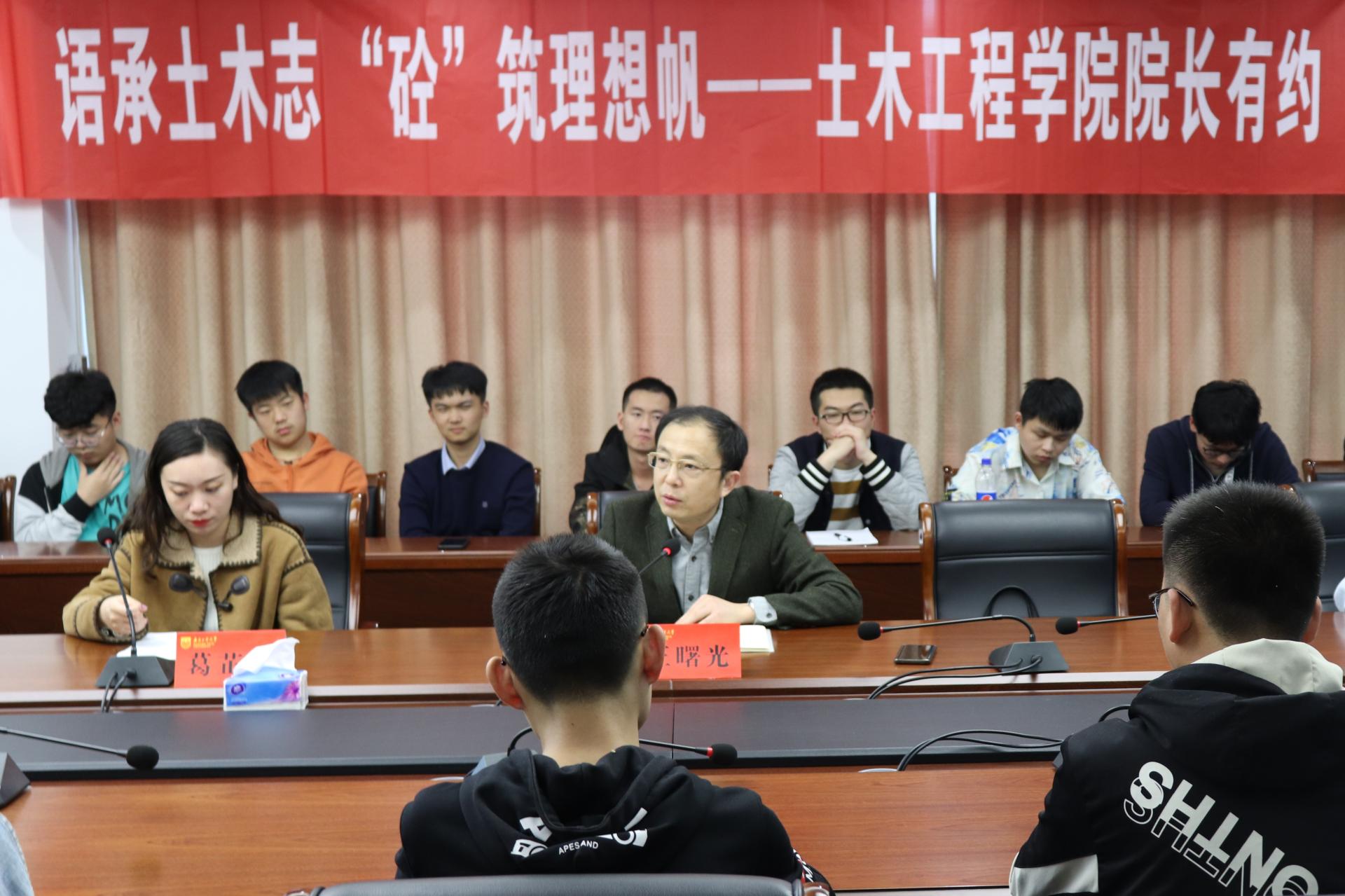 活动伊始,王曙光院长向同学们介绍了土木工程的科学内涵以及太阳成官网土木学科的特点与优势。他指出,作为工科学子,在做好工学知识储备的同时,也要注重人文素养的积累,做一个全面发展的新时代新青年。在随后的交流环节中,同学们踊跃发言,围绕互联网时代智能建造发展前景、新时代土木人应具备的专业素养、BIM技术在工程实践中的应用、土木工程行业未来发展趋势等方面提出了自己的疑问与困惑。王院长针对同学们提出的问题一一详细解答,并希望同学们紧抓基础课程的学习,打好扎实的专业基础,牢牢把握土木行业智能化这一革新机遇,在土木行业的广阔天地里建功立业。