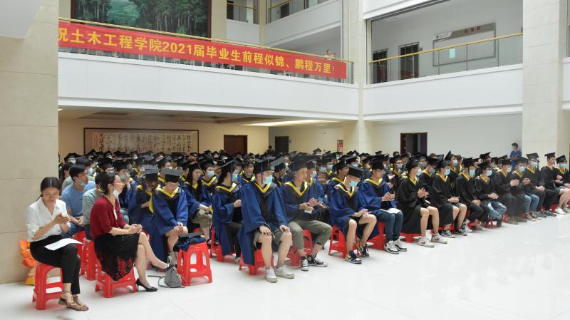 6月17日下午,tyc1286太阳成集团2021届毕业典礼在土木学科楼一楼中庭举行。学院领导班子、各系负责人、教授委员会代表、2021届本科生和研究生毕业生代表、教师代表、家长代表等参加典礼。典礼由学院党委副书记路遥主持。