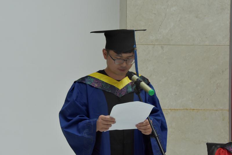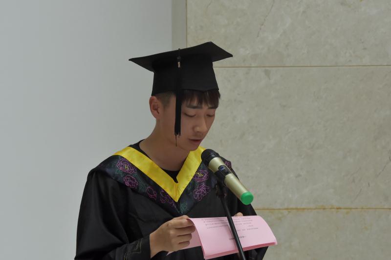 毕业典礼伊始,学院党委书记张涛宣读2021届优秀毕业生名单。随后,本科毕业生代表吴芃昊同学、毕业研究生代表王灿同学分别发言,分享了自己在校期间成长的青春故事,感谢学校、学院和师长的谆谆教诲。教师代表邓文琴老师在发言中表示,希望同学们毕业之后仍要保持学习,调整自己的心态,找准自身的定位,开放包容,爱人爱己。在欢快的音乐声中,在主席台就坐的师长们为毕业生授予学位并拨穗。