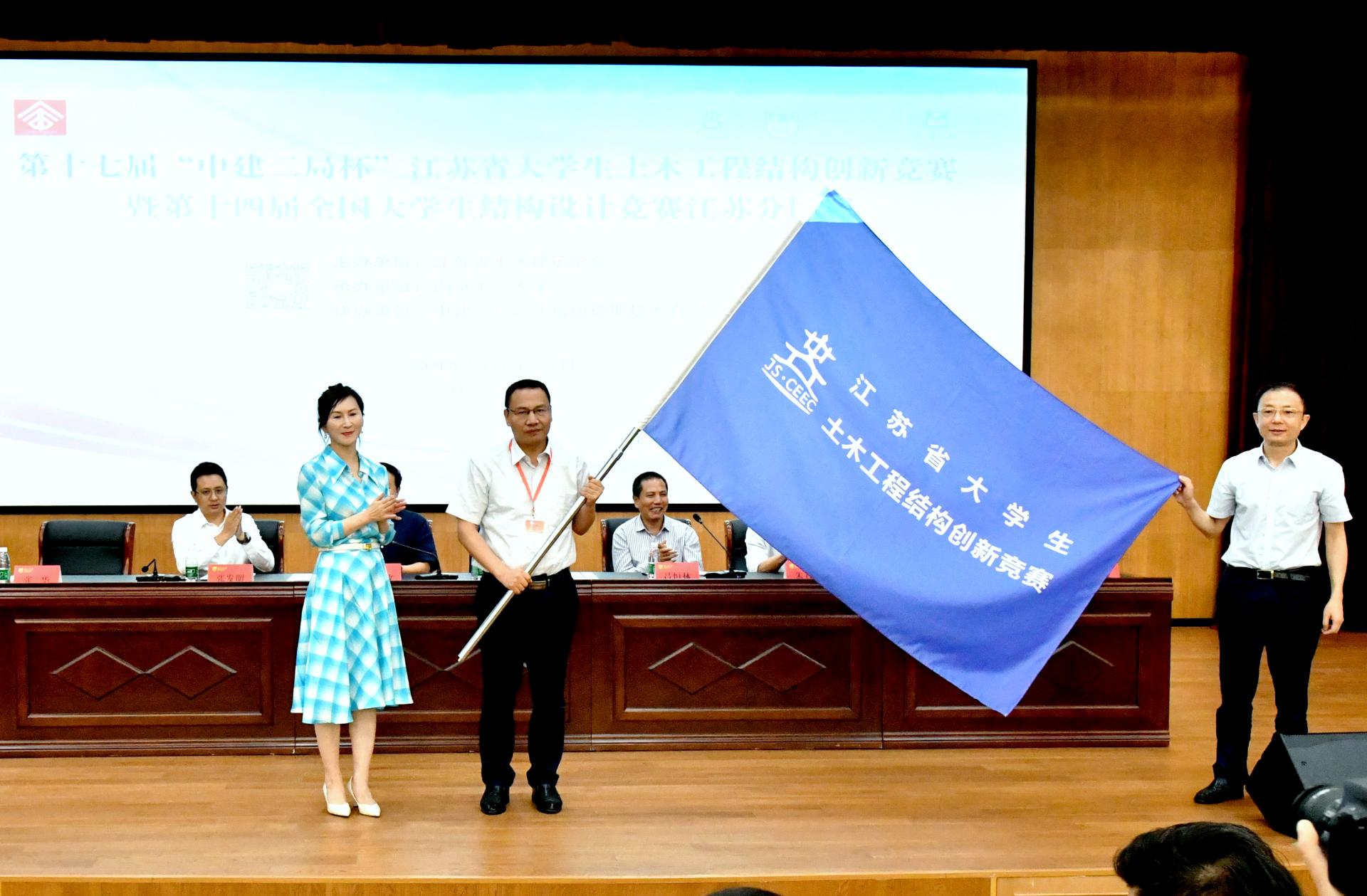 比赛赛旗传递给下届承办高校江苏海洋大学