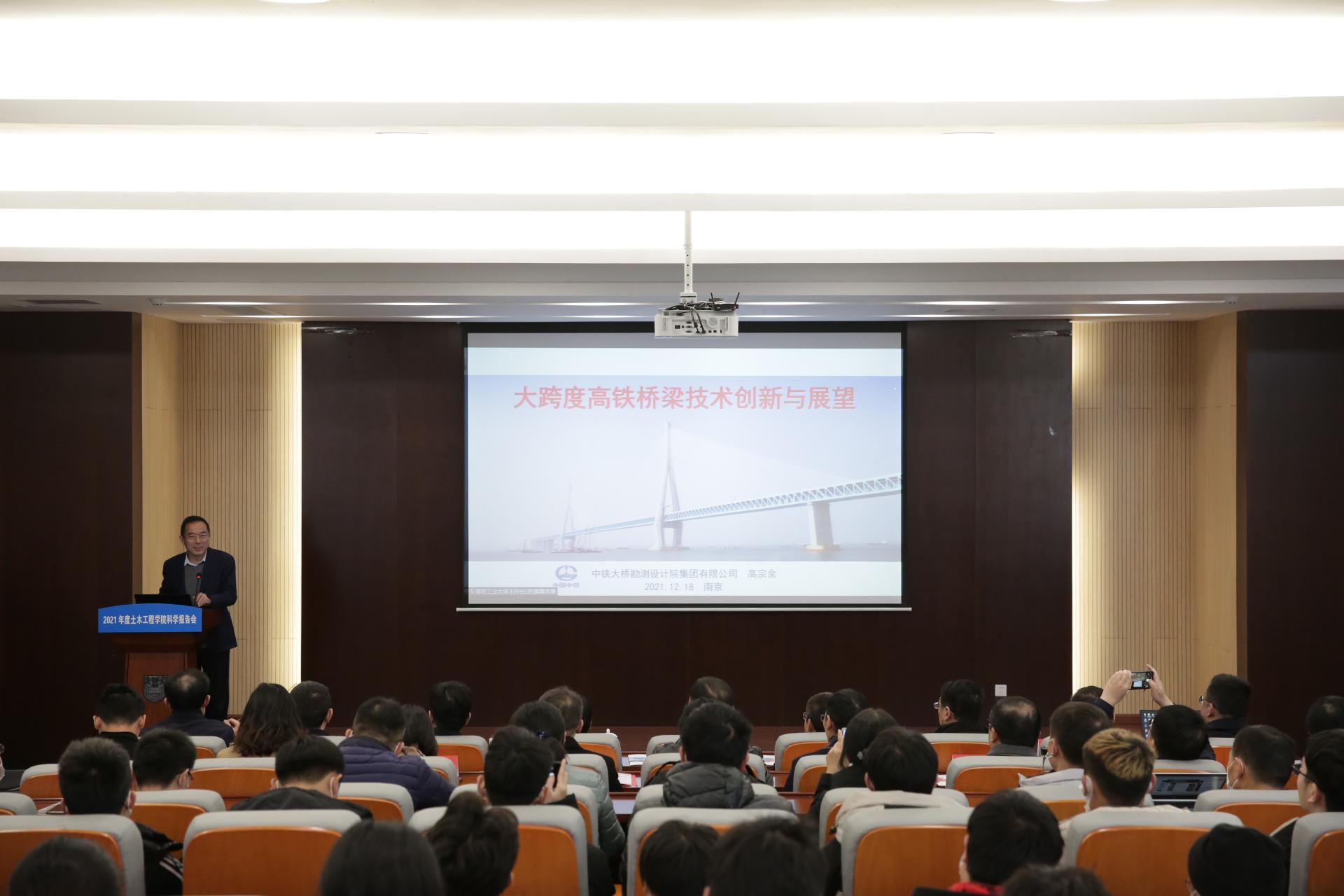 中国工程院院士、全国工程勘察设计大师、教授级高级工程师高宗余作《大跨度高铁桥梁技术创新和发展》学术报告