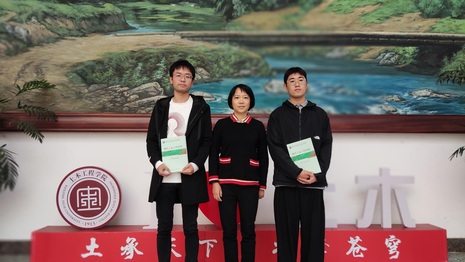 王俊副院长为与她同生日的赵敬阳、袁照鹏两位同学赠与了由她编写并最新出版的住房和城乡建设部“十四五”规划教材——《现代土木工程材料》。王老师勉励学生,在研究生期间的学习与本科阶段有很大不同,要发挥刻苦钻研精神,勇于探索和突破,尤其要重视新材料、人工智能与土木工程的结合。希望两位同学在研究生阶段努力学习,外延自己的知识体系,获得能力的提升。