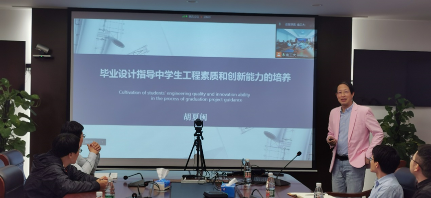 11月3日,tyc1286太阳成集团tyc1286太阳成集团原党委书记胡夏闽教授做主题为《毕业设计指导中学生工程素质和创新能力的培养》专题报告,胡夏闽教授从工程素养的概念提出工程师需具备的基本素质,引出毕业设计选题的深度和广度问题、教师工程经验和指导经验不足、学生自律性和综合素质等方面的问题,结合具体设计问题指出毕业设计过程中需重点培养全局意识、成本意识、质量意识、创新意识和团队合作意识,并对毕业设计工作中教师和学生基本素养的培养提出宝贵建议。