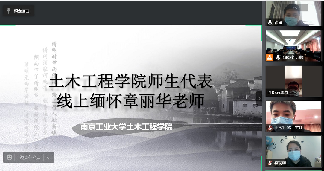 在线上缅怀活动中,与会师生首先通过“宁思念”平台为章丽华老师墓献花,表达了对章丽华老师的敬仰与哀思,并观看章丽华老师事迹视频。随后,章丽华老师的亲属结合相关珍贵照片,为师生代表在线讲述了老人生前的点滴事迹,激励后辈学子珍惜青春韶华,绽放青春华章。已经连续4年获助“胡松林奖学金”的2018级学生刘远鹏表示,要铭记章老恩情,传承章老风范,潜心回报社会。