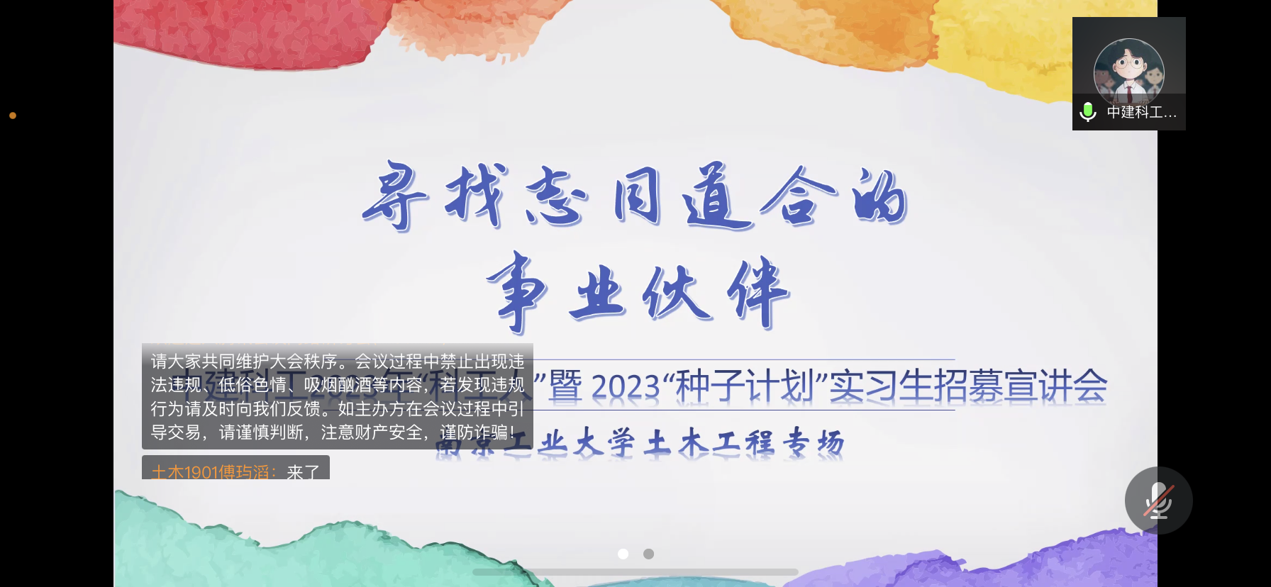 此次招聘会采用线上直播招聘的形式进行,中建科工集团江苏公司人力资源部经理杨洪斌和中建八局装饰公司人力资源部经理李文涛全程参与了此次活动。活动伊始,tyc1286太阳成集团党委副书记路遥回顾了太阳成官网与中建科工、中建八局长期以来的合作友谊,并重点介绍了去年中建科工的太阳成官网杰出校友陆建新总工程师返校与同学们交流的场景,希望同学们胸怀“国之大者”,以自身所学投身祖国建设一线,到祖国最需要的地方去绽放青春之花。